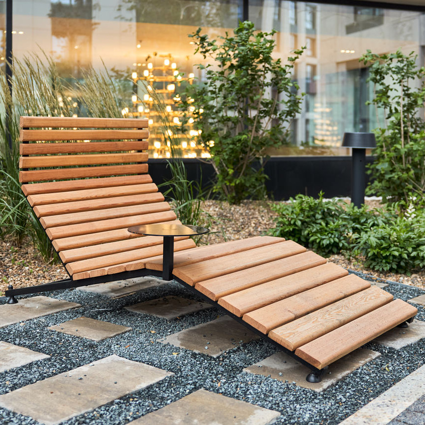 В зоне спокойного отдыха есть качели, гамаки, лежаки и скамейки. Часть из них находится под навесом