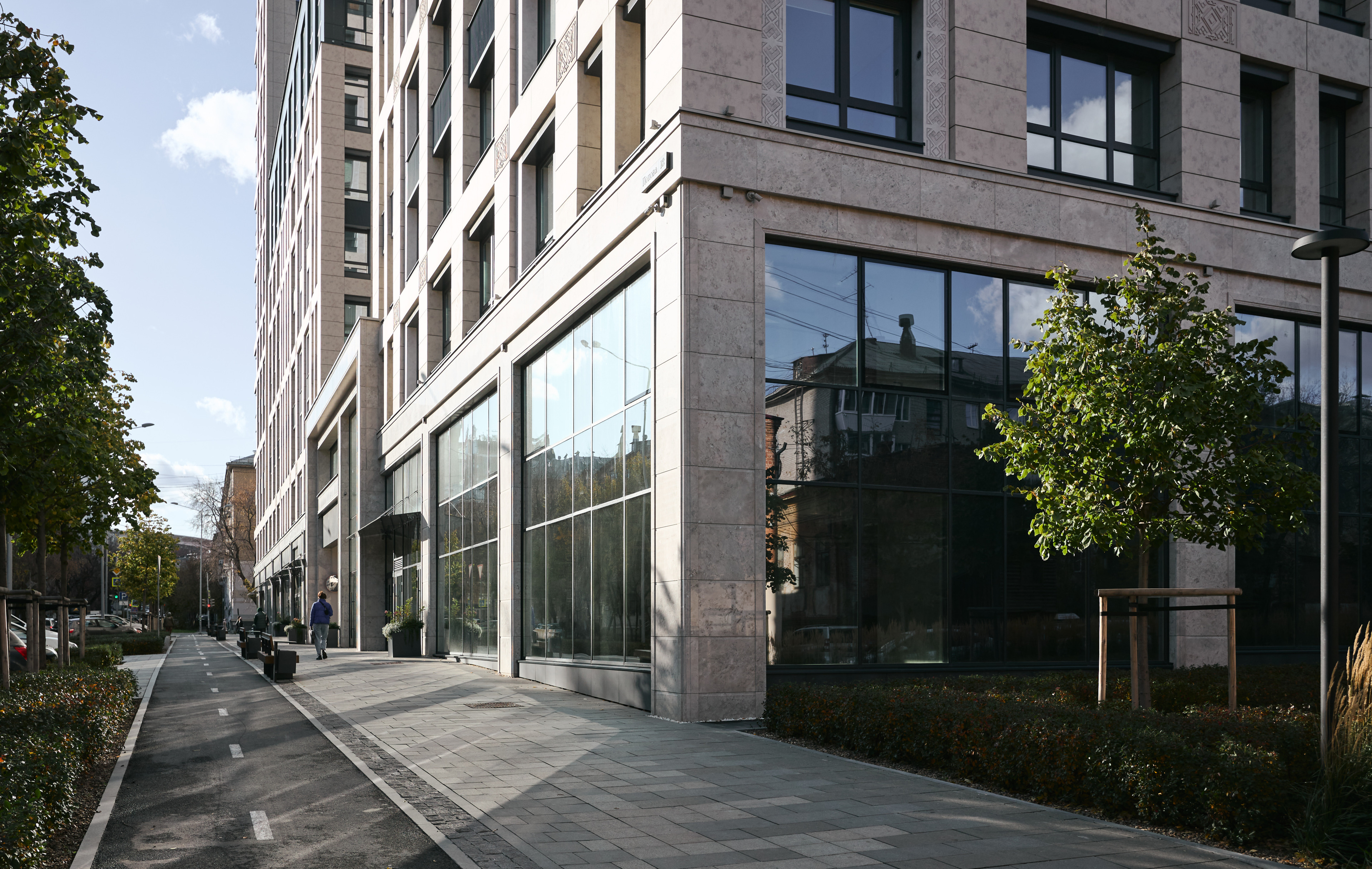 На первом этаже «Ленина 8» откроются коммерческие помещения, объединённые внутренней галереей. Жители клубного дома могут попасть в неё не выходя из дома, спустившись на лифте.