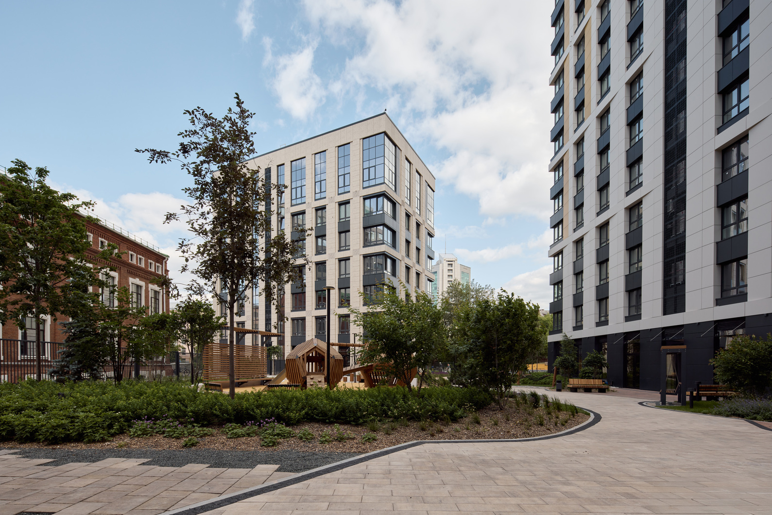 Это 15-этажная секция на улице Шейнкмана, 28-этажная башня во дворе и 7-этажный дом. Они сданы в конце 2023 года.