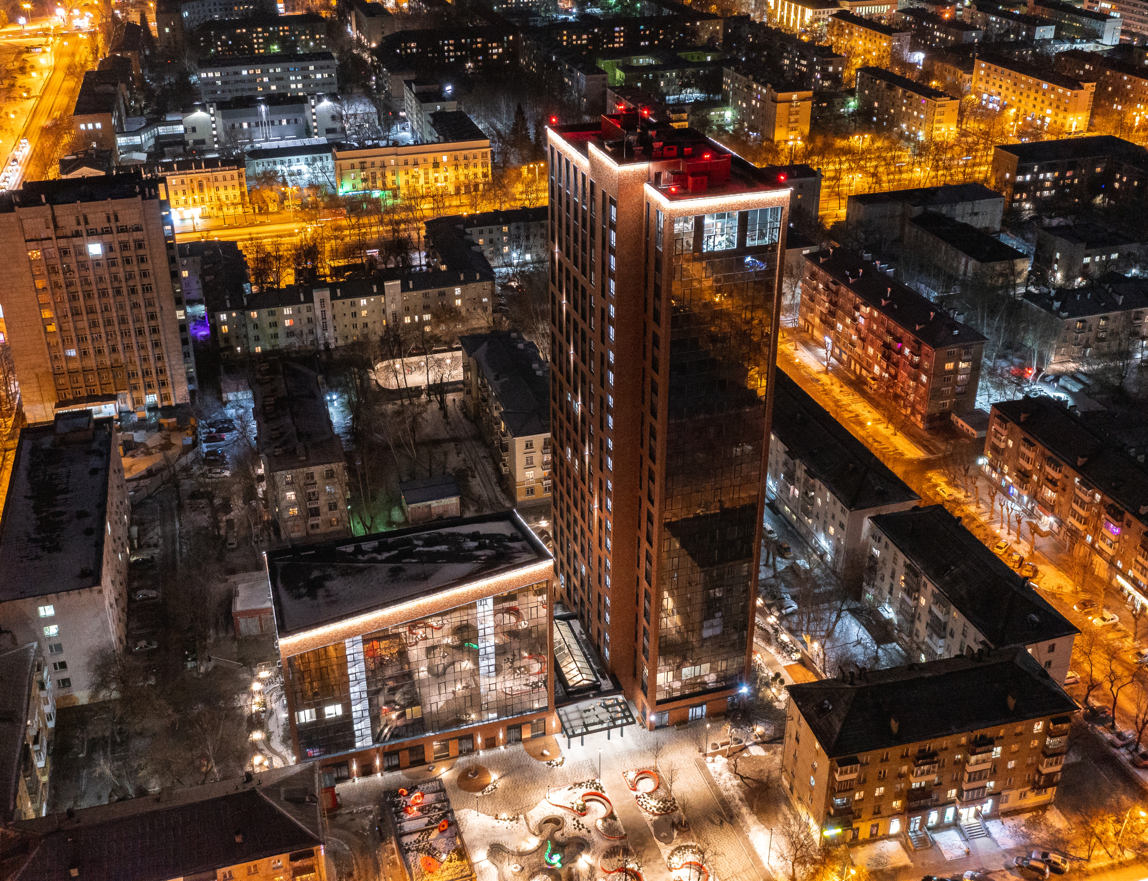 Первомайская, 60 — жилой дом бизнес-класса с английским садом в центре города. Дом расположен в глубине тихого квартала, в квадрате проспекта Ленина и улиц Восточная, Первомайская, Мичурина. На верхних этажах — квартиры с высотой потолков 5,8 метра и возможностью организовать антресоль для занятий хобби, спортом или отдыха. Это квартиры с двухсветным пространством и высокими витражными окнами.