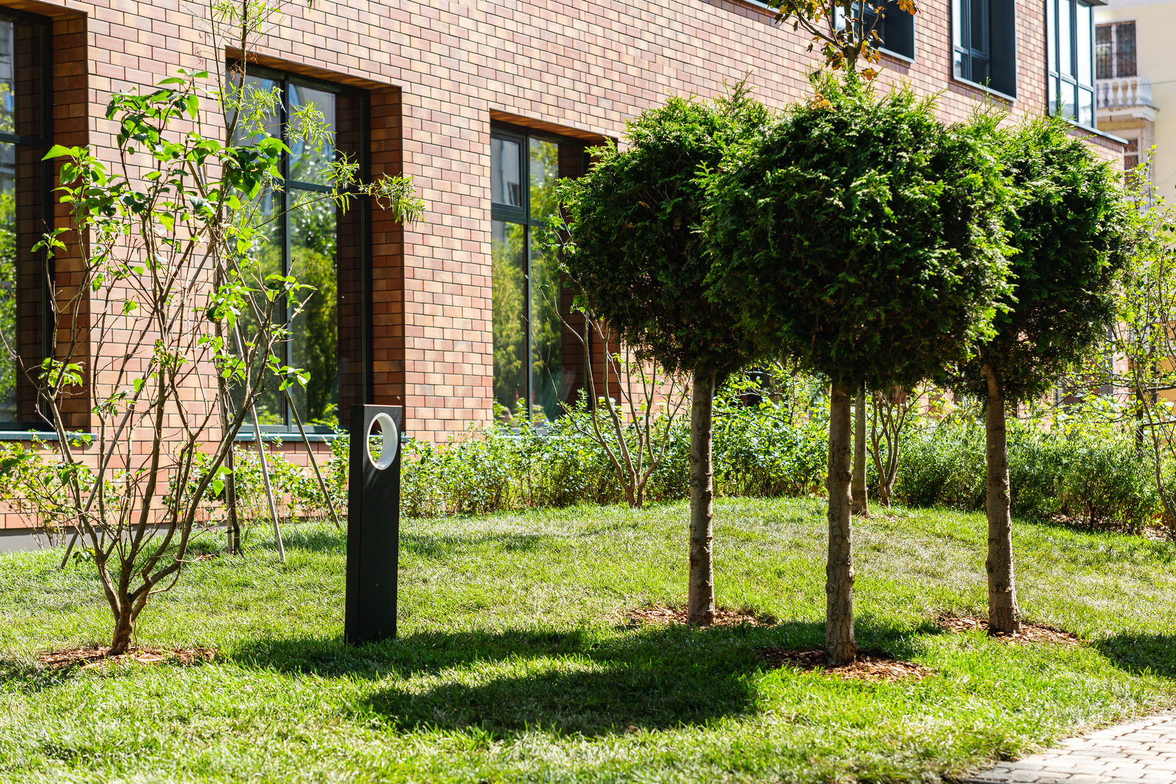 В доме на Первомайской, 60 использованы растения, которым подходит наш климат. Двор красиво выглядит в любое время года. Он пышно цветёт весной, наполнен зеленью летом, осенью превращается в яркий, красно-золотой, а зимой его украшают графичные стволы деревьев и вечнозелёные растения. За садом интересно наблюдать, следить за изменениями в зависимости от сезона.