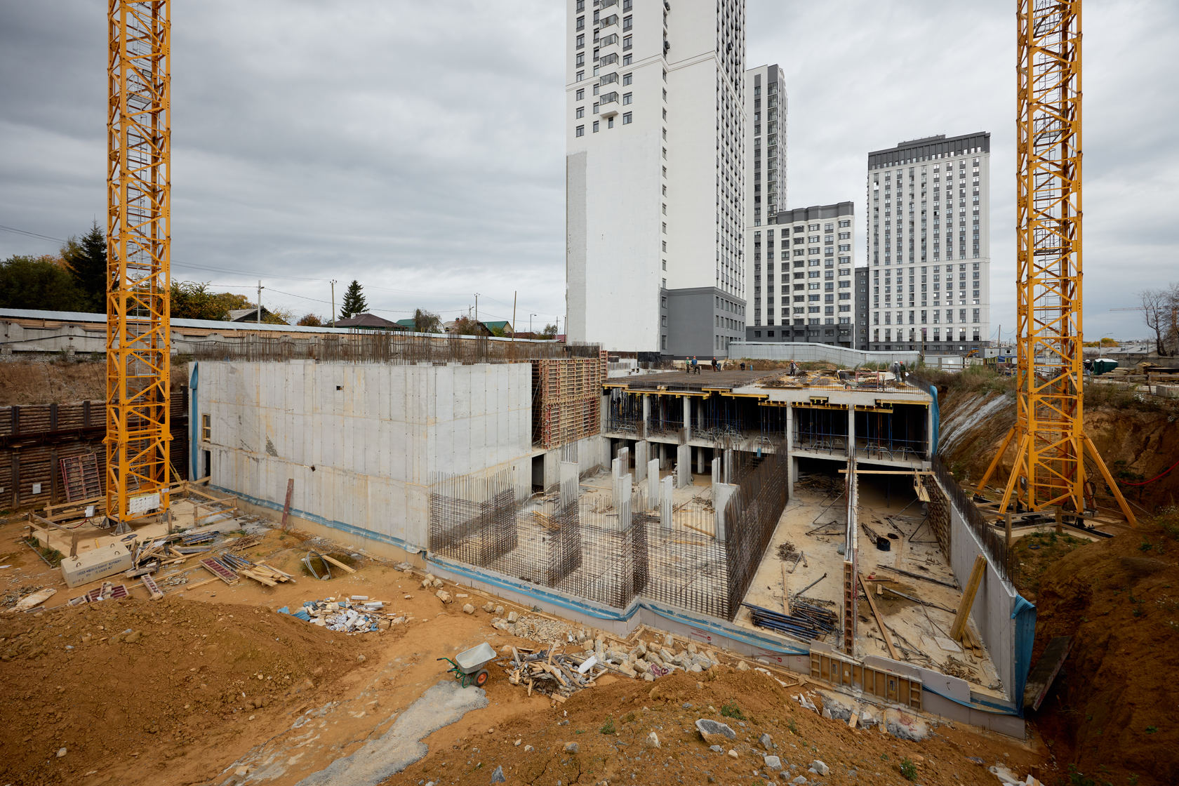 Первый дом сдан и заселён. Второй дом состоит из семи жилых секций от 11 до 32 этажей. Его строят в три этапа. Первые три секции сдали в третьем квартале 2024 года. Сейчас возводят две следующие, которые достроят в 2027 году. На изображении ниже они выделены зелёным цветом.