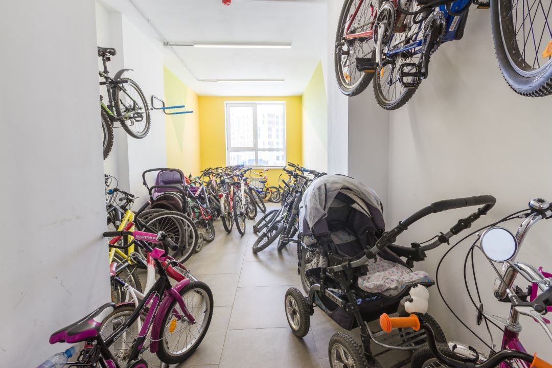 На −1 этажах домов расположены кладовые: для хранения сезонных вещей, сноубордов и лыж, палаток и спальников, покрышек и колёс — всего того, что обычно занимает квадратные метры в квартире или загромождает лоджии.