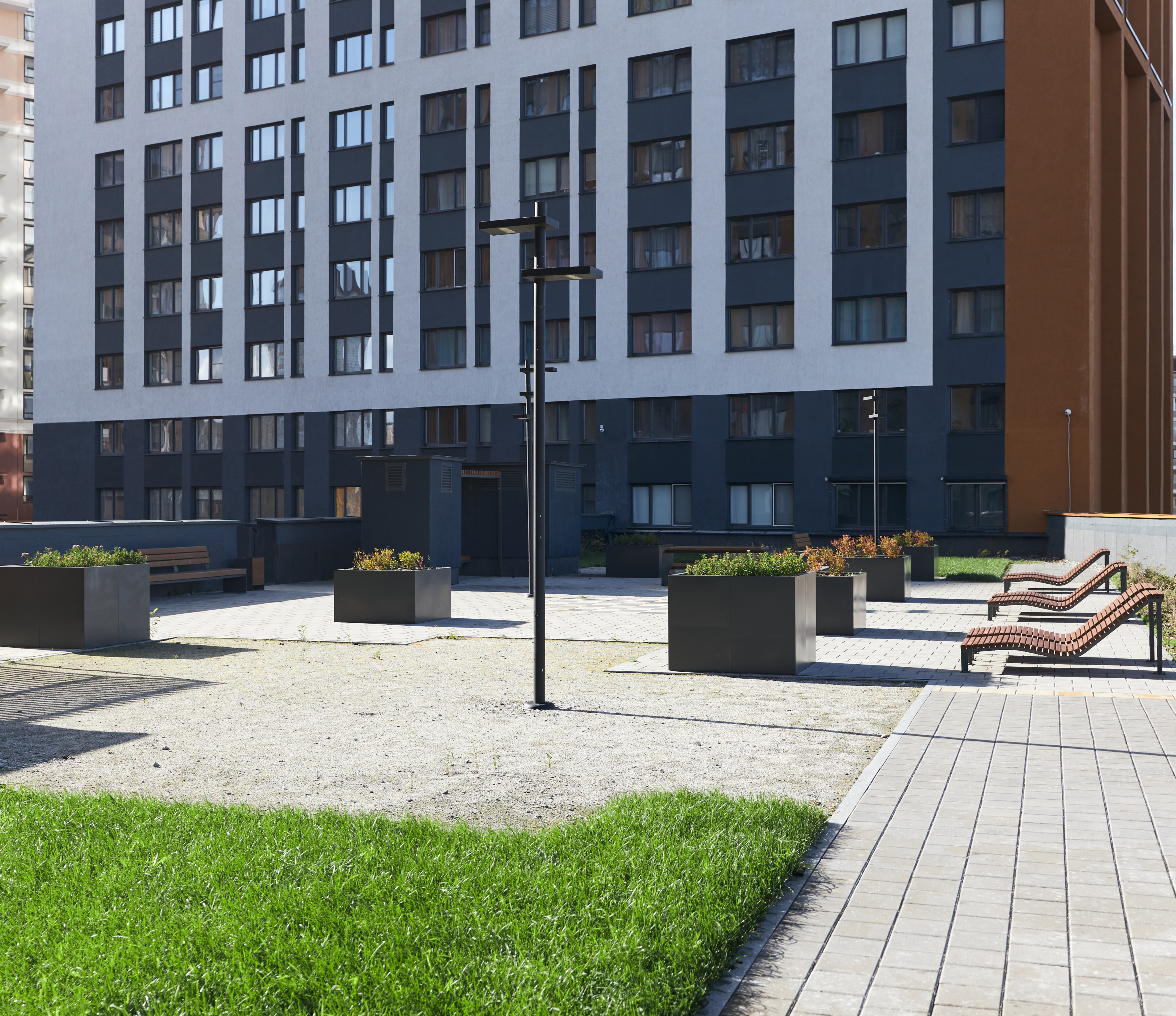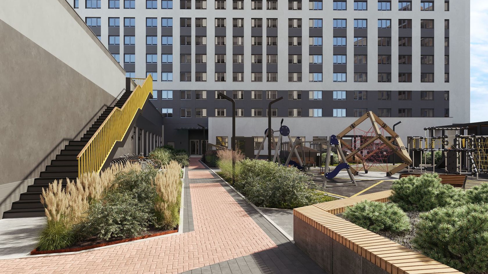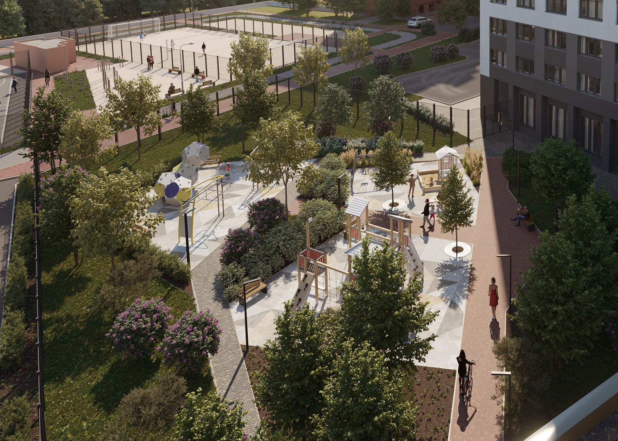 В квартале три двора для жителей — они расположены между башнями