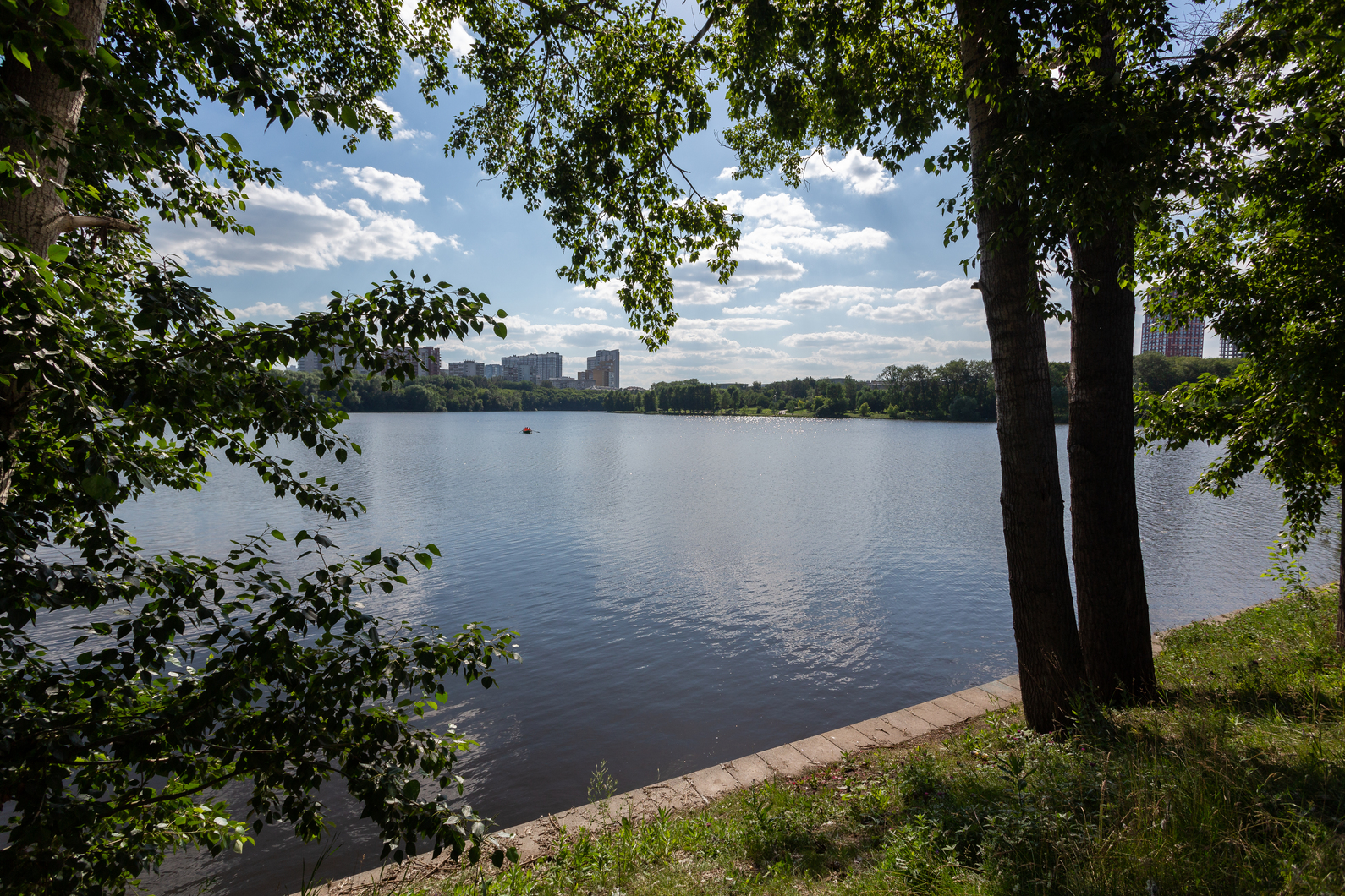Здесь высажены газон, травы и яблони. Обустроены места для отдыха — скамейки и беседки