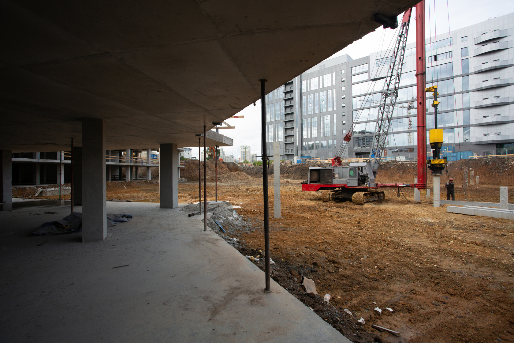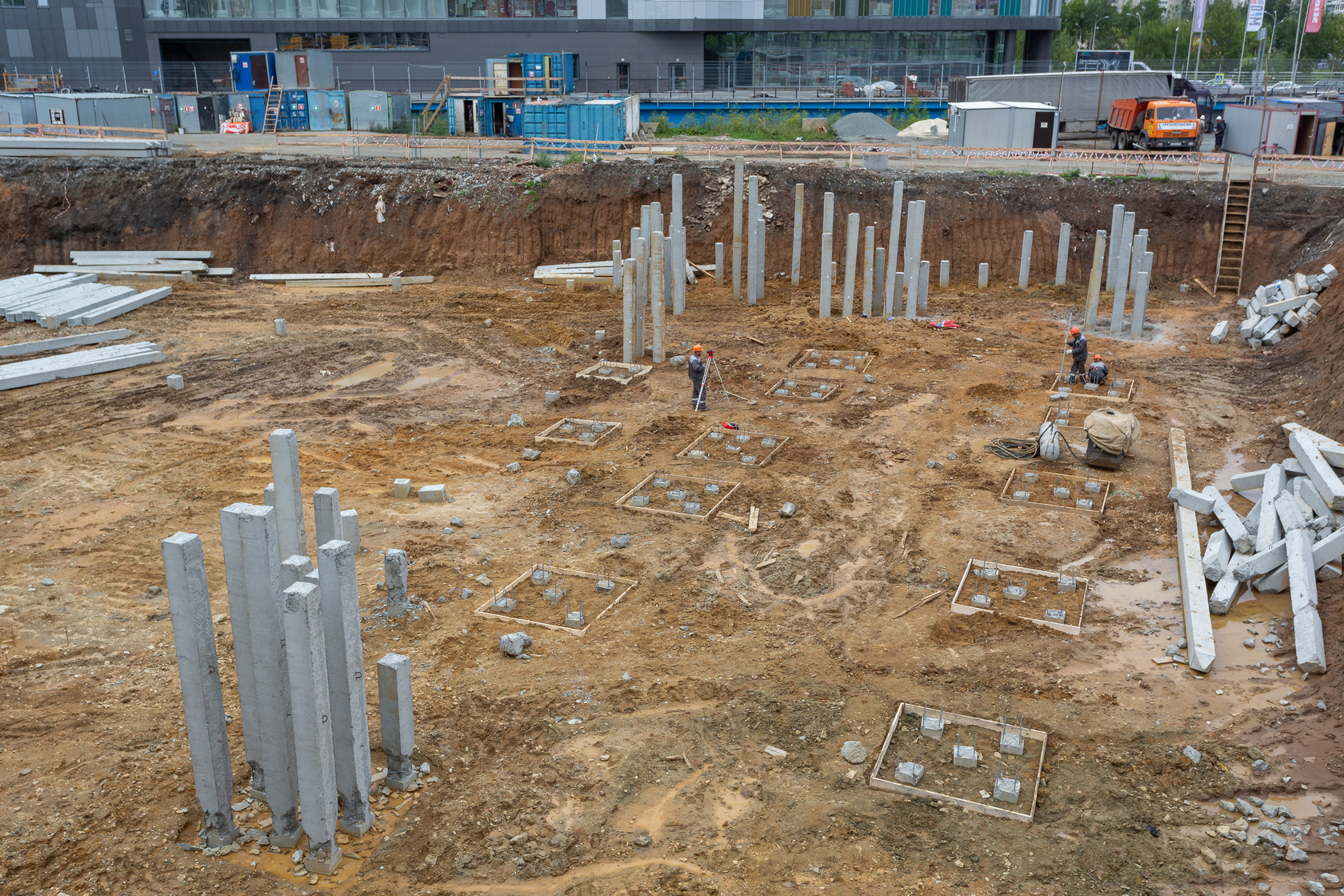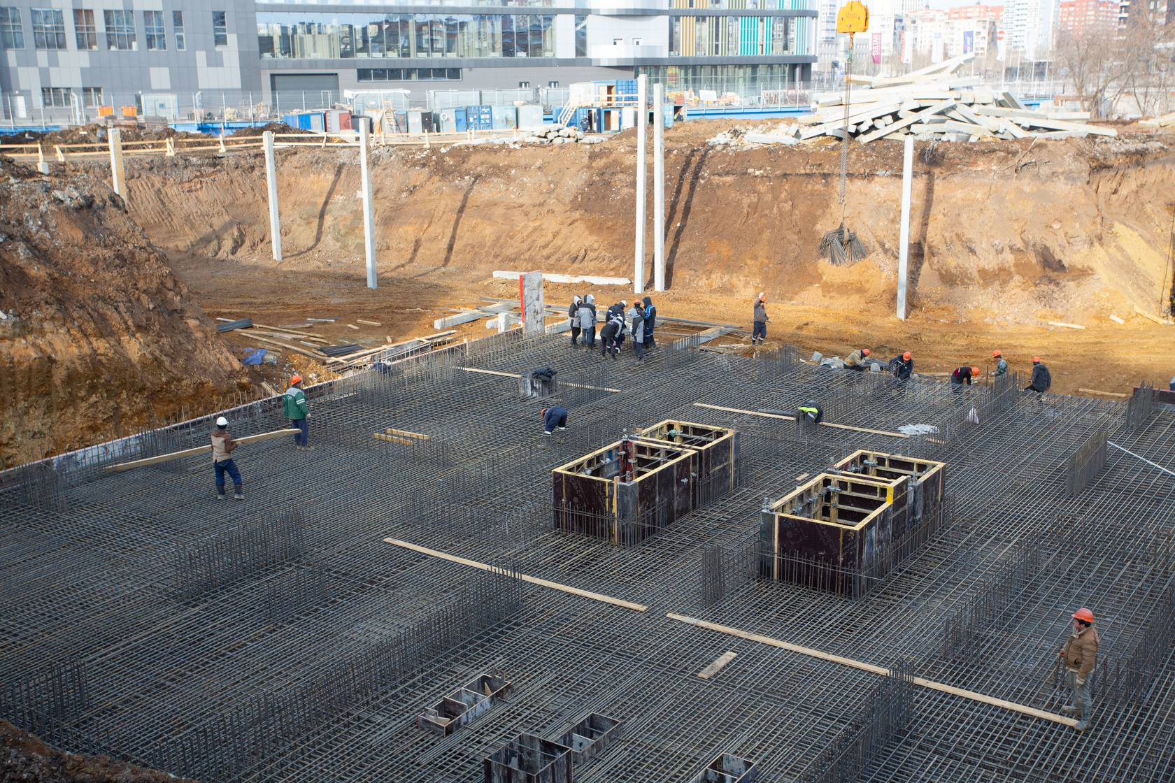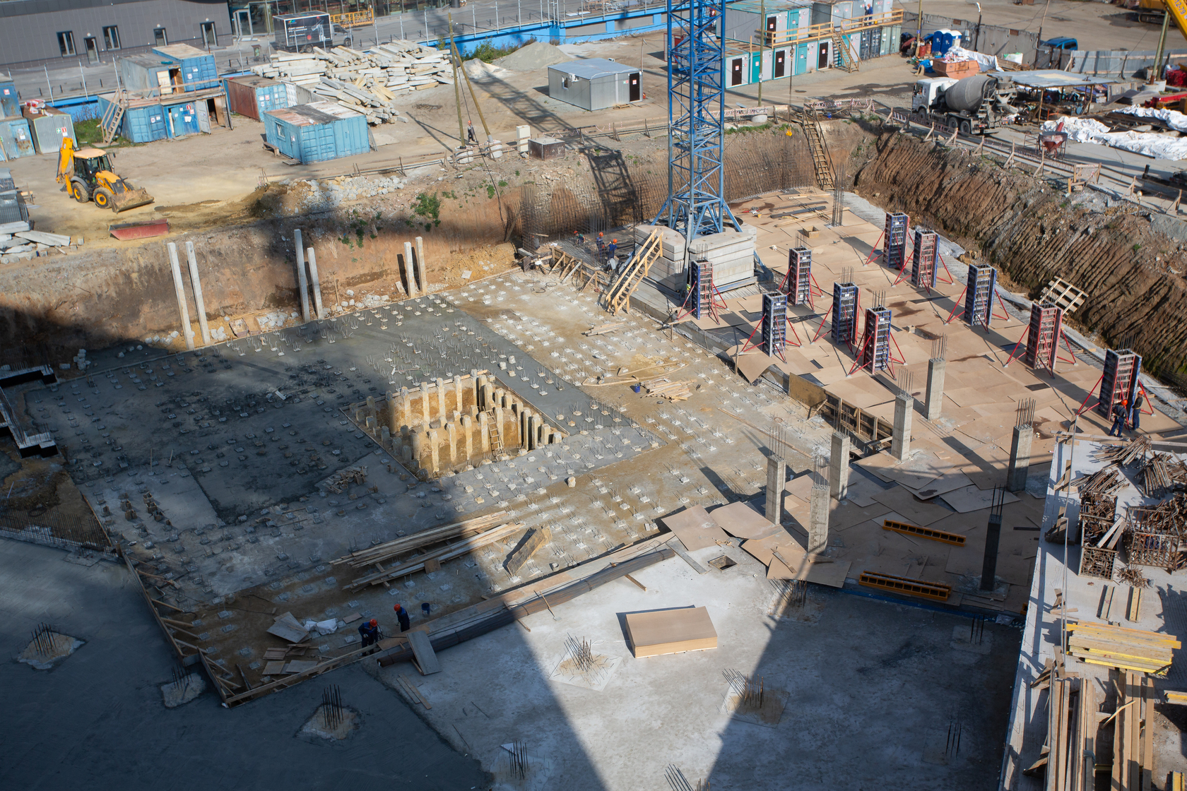 Закончили забивку свай. Выполняем фундаменты и вертикальные конструкции паркинга.