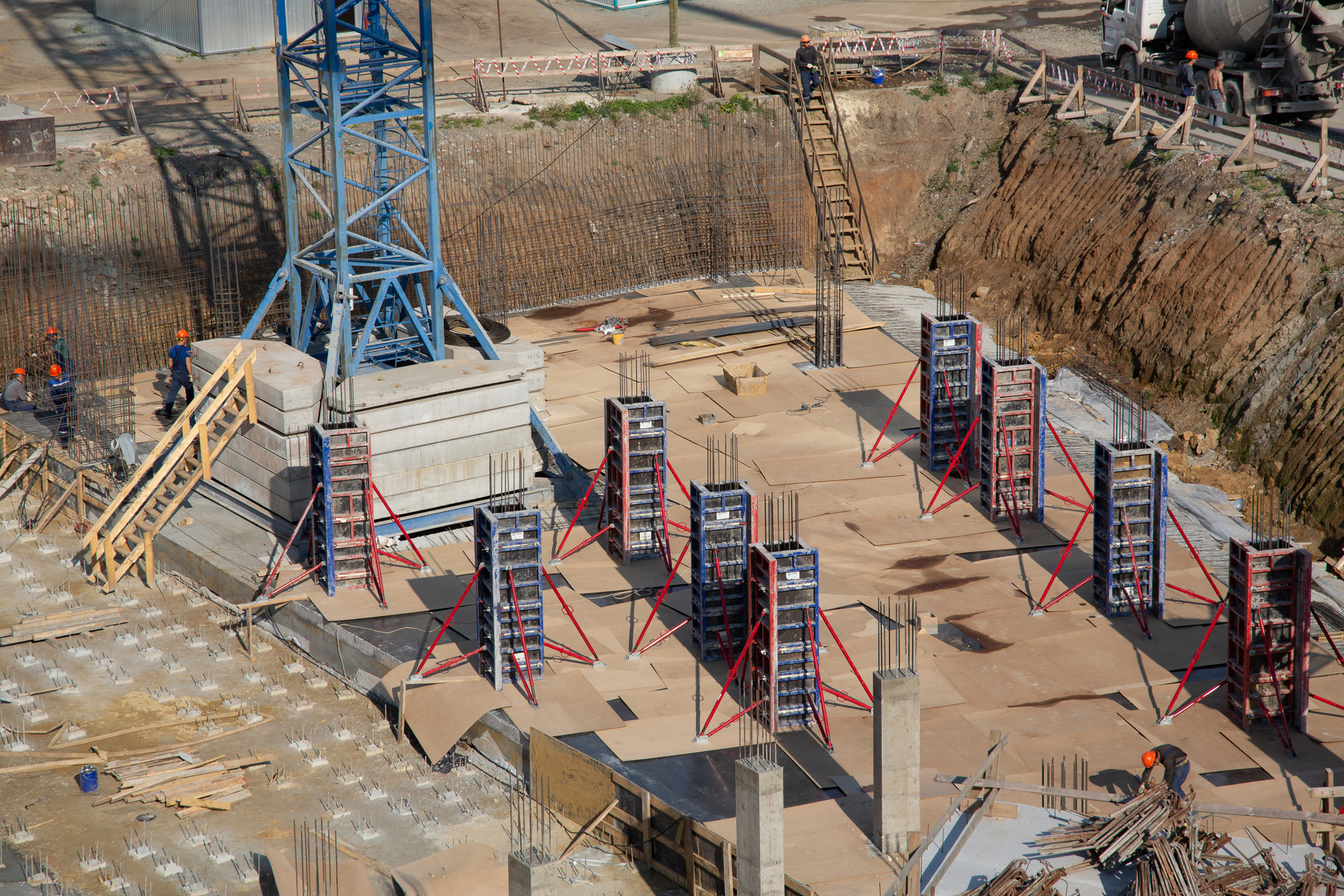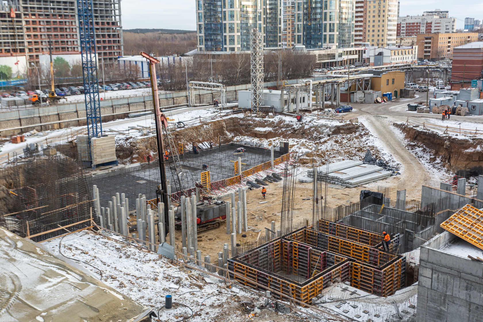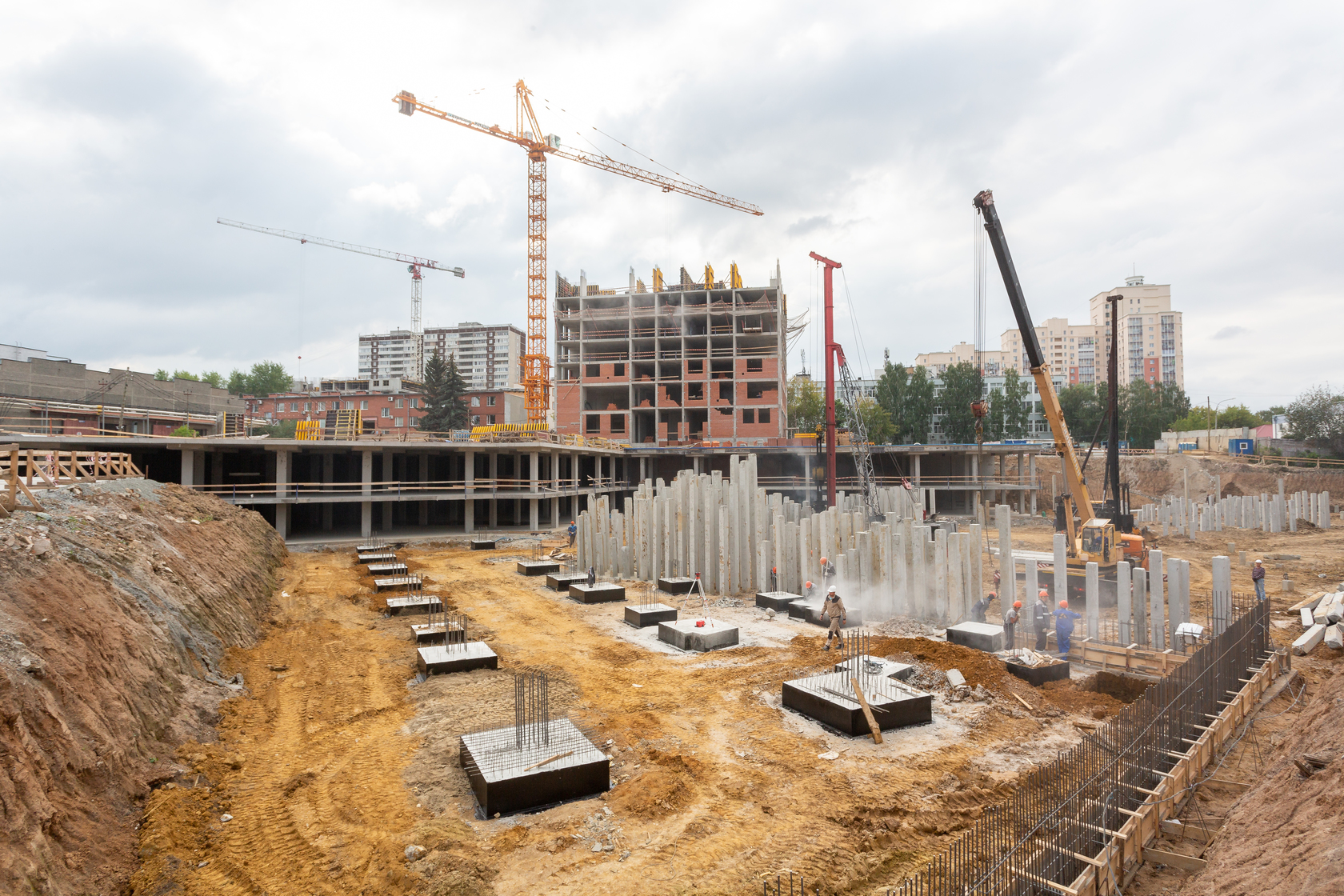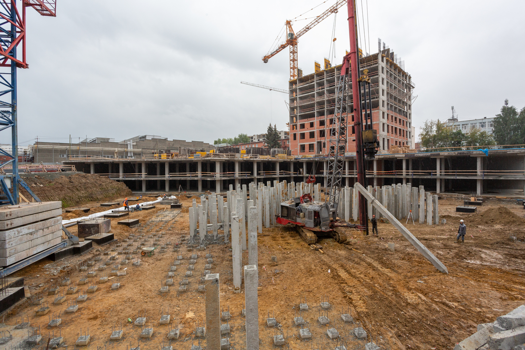Закончили забивку свай. Выполняем фундаменты и вертикальные конструкции паркинга.