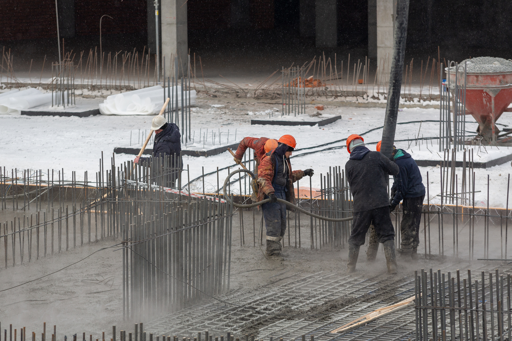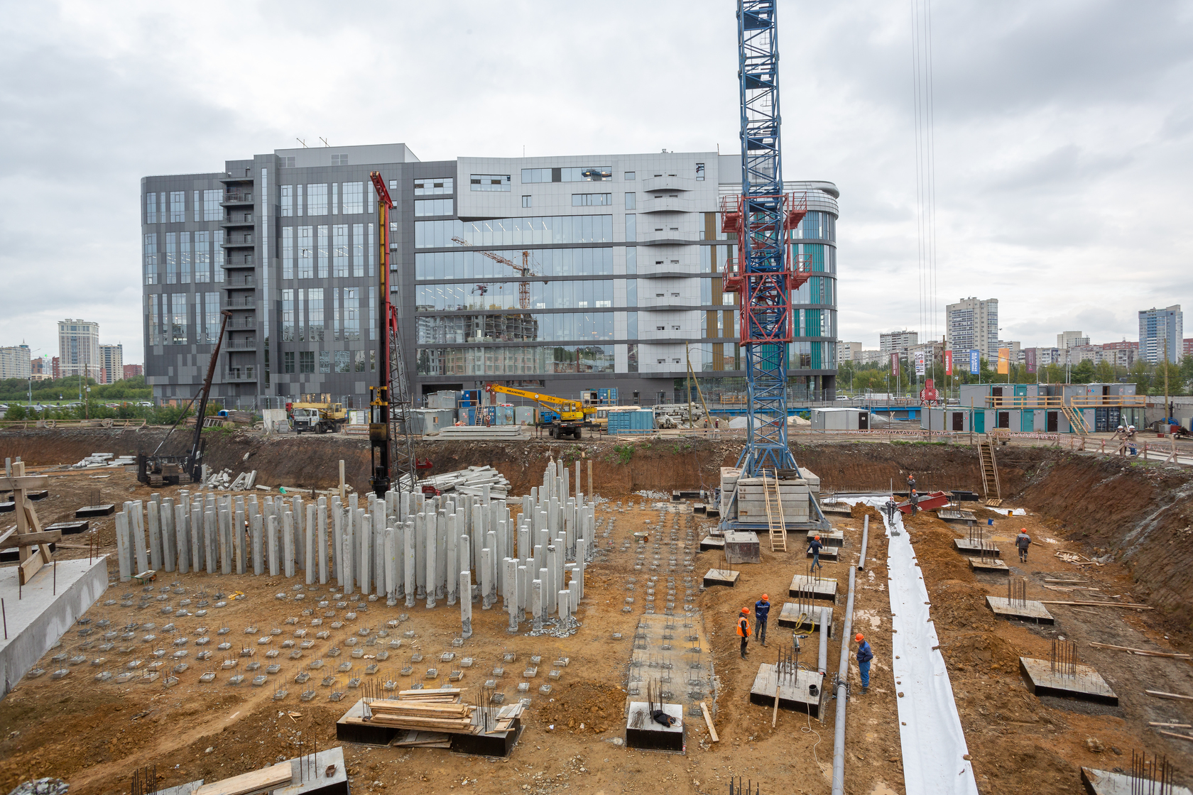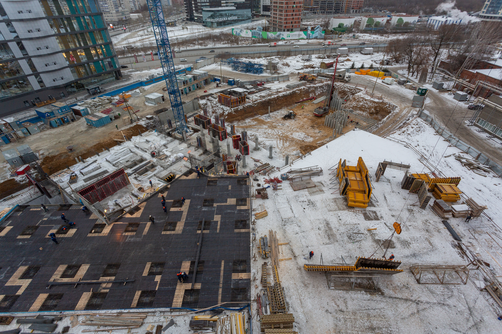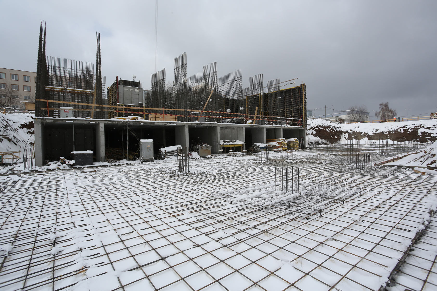 Закончили забивку свай. Выполняем фундаменты и вертикальные конструкции паркинга.