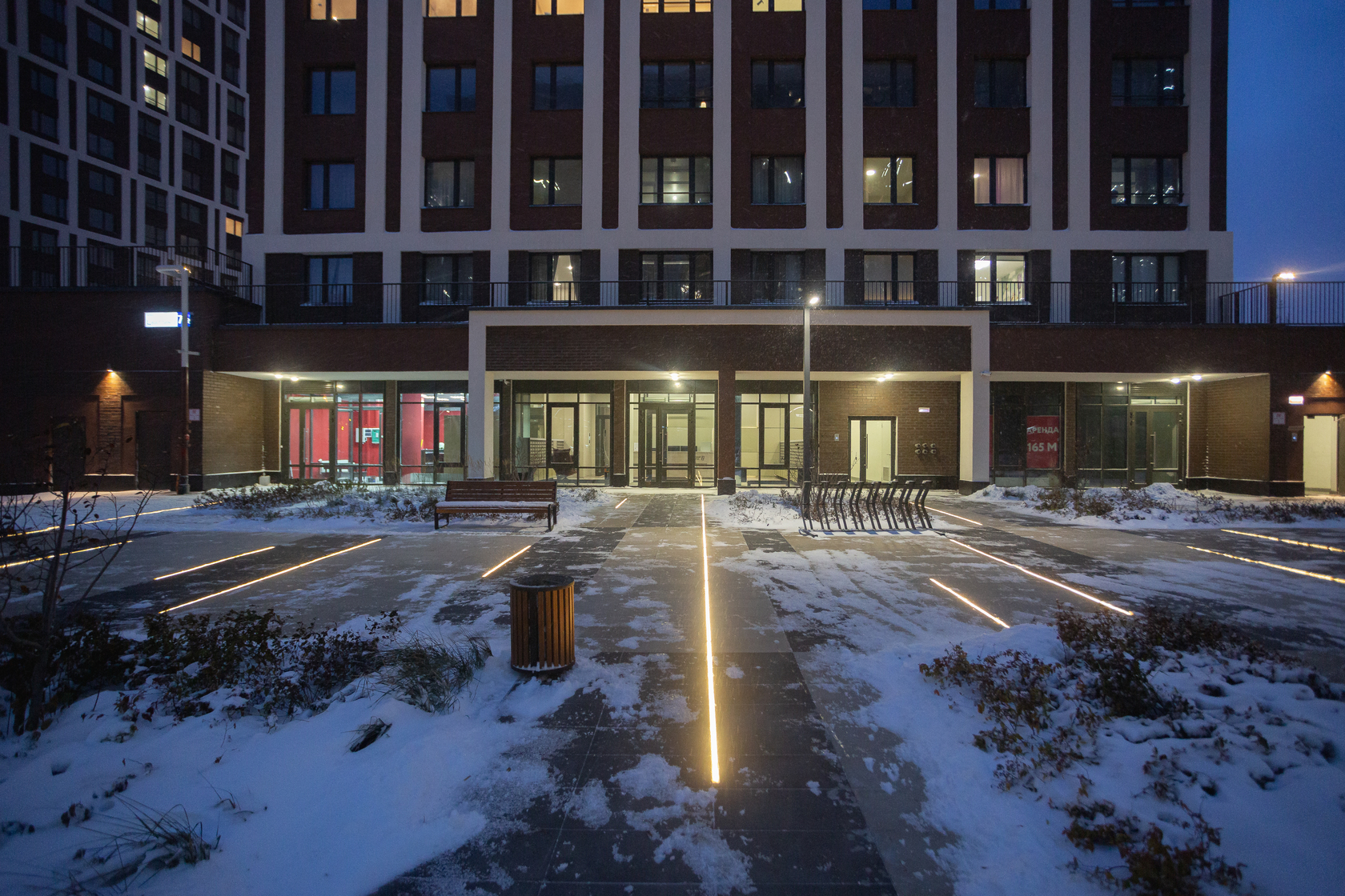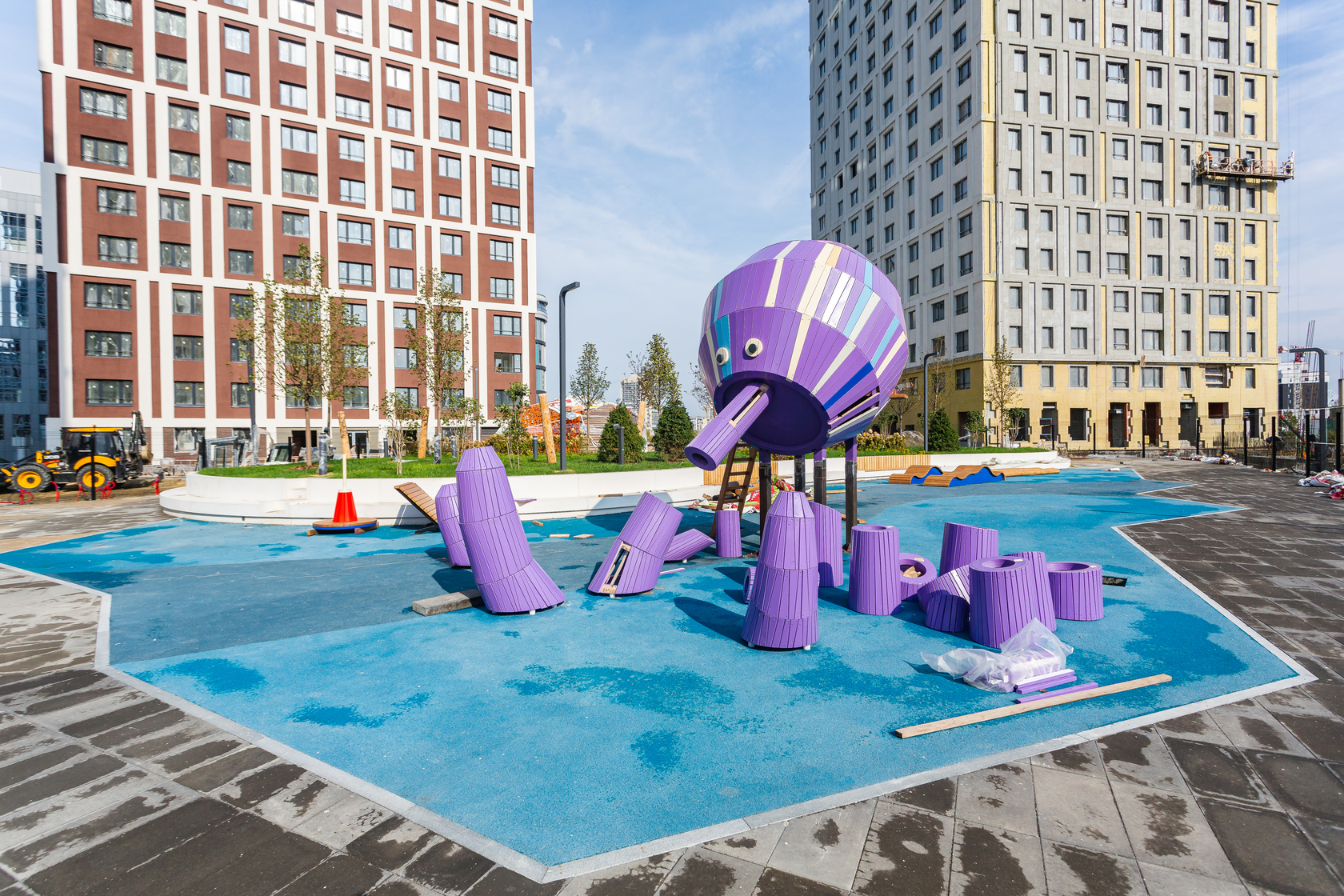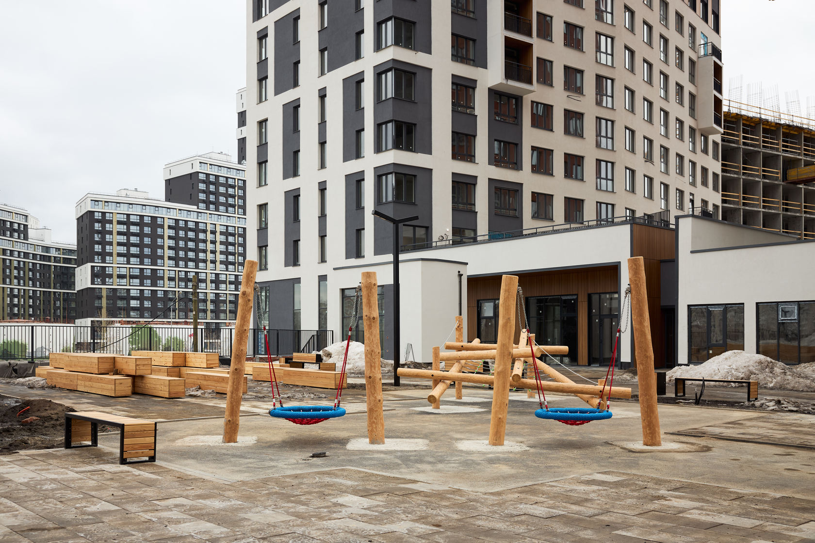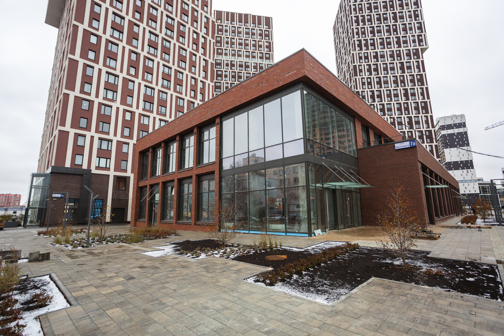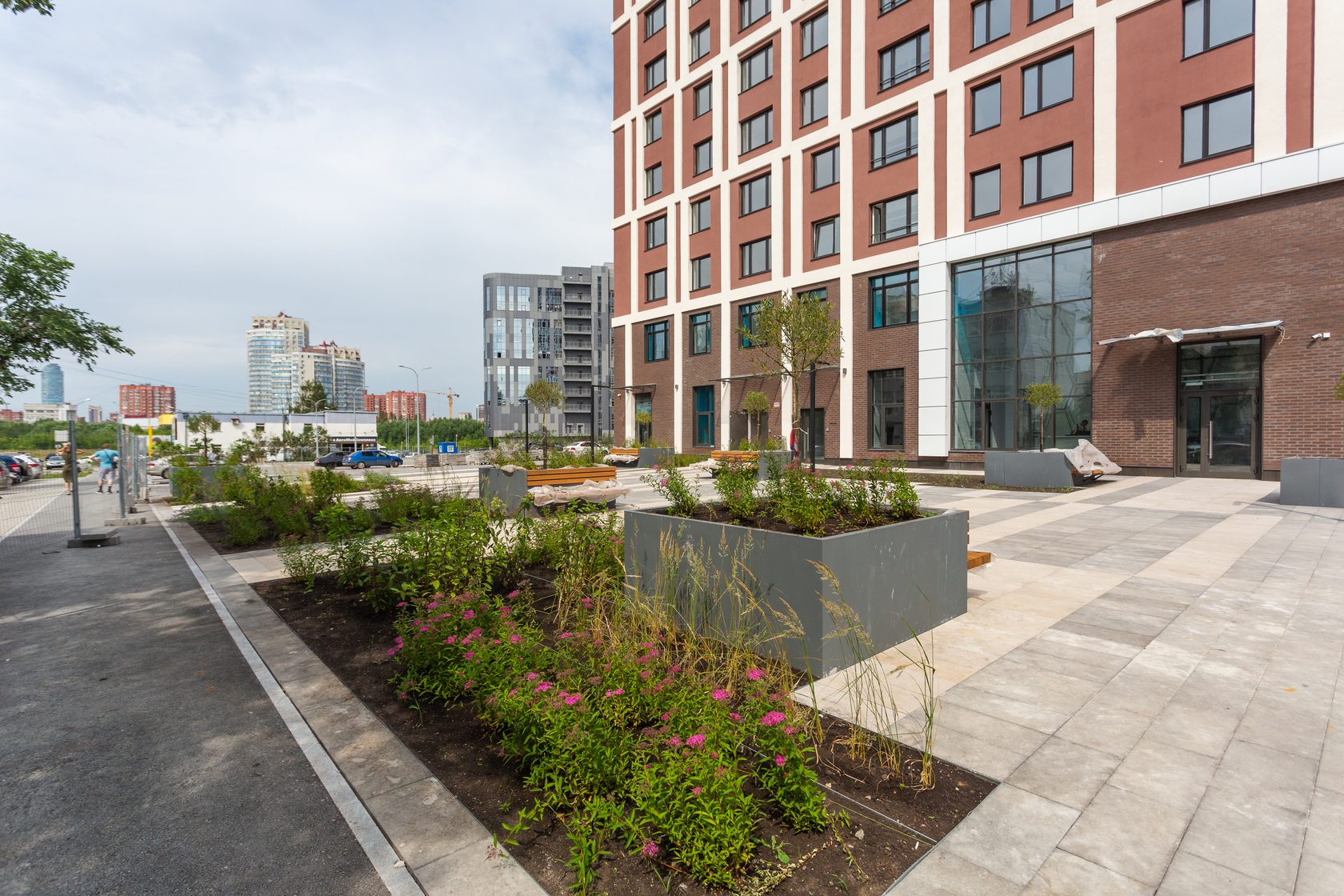 Возводим монолитные конструкции 15 этажа первого дома. Выполняем кирпичную кладку стен на 9–11 этажах. Возводим монолитные конструкции стен подземной части дома и паркинга. Выполнили котлован третьего жилого дома. Забиваем сваи третьего дома.