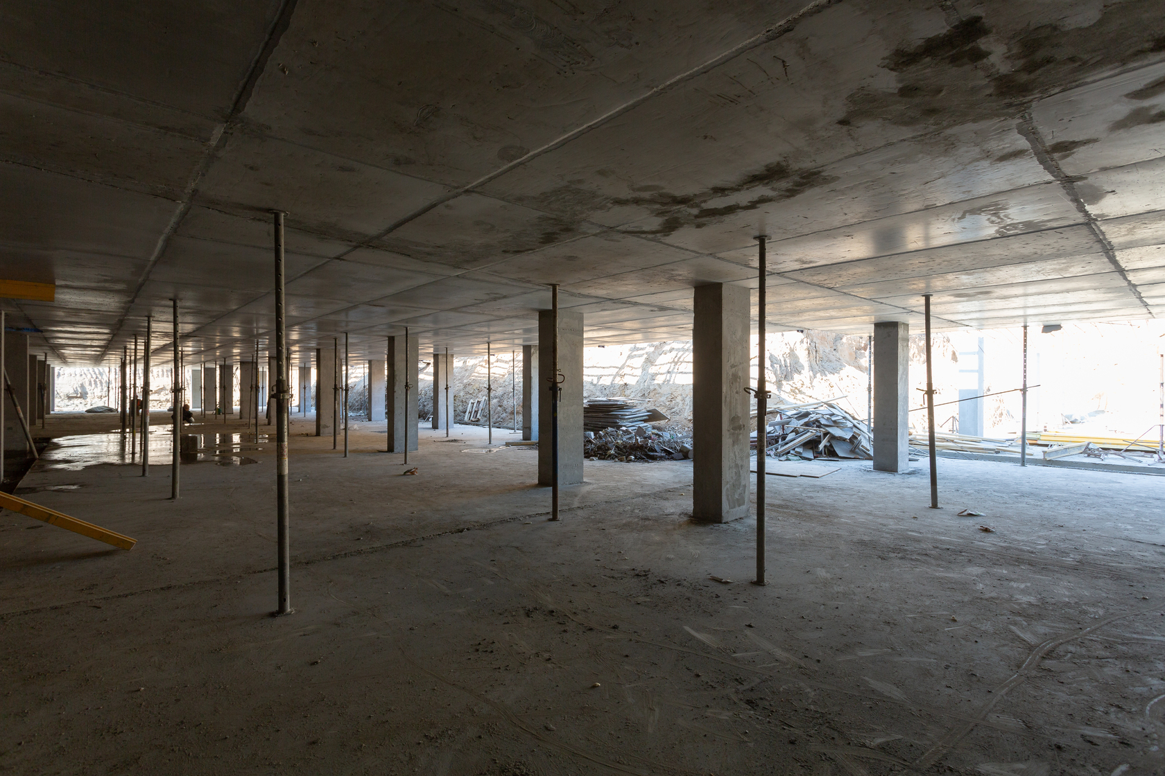 Выполняем монолитные конструкции каркаса паркинга. Делаем дренажную систему.