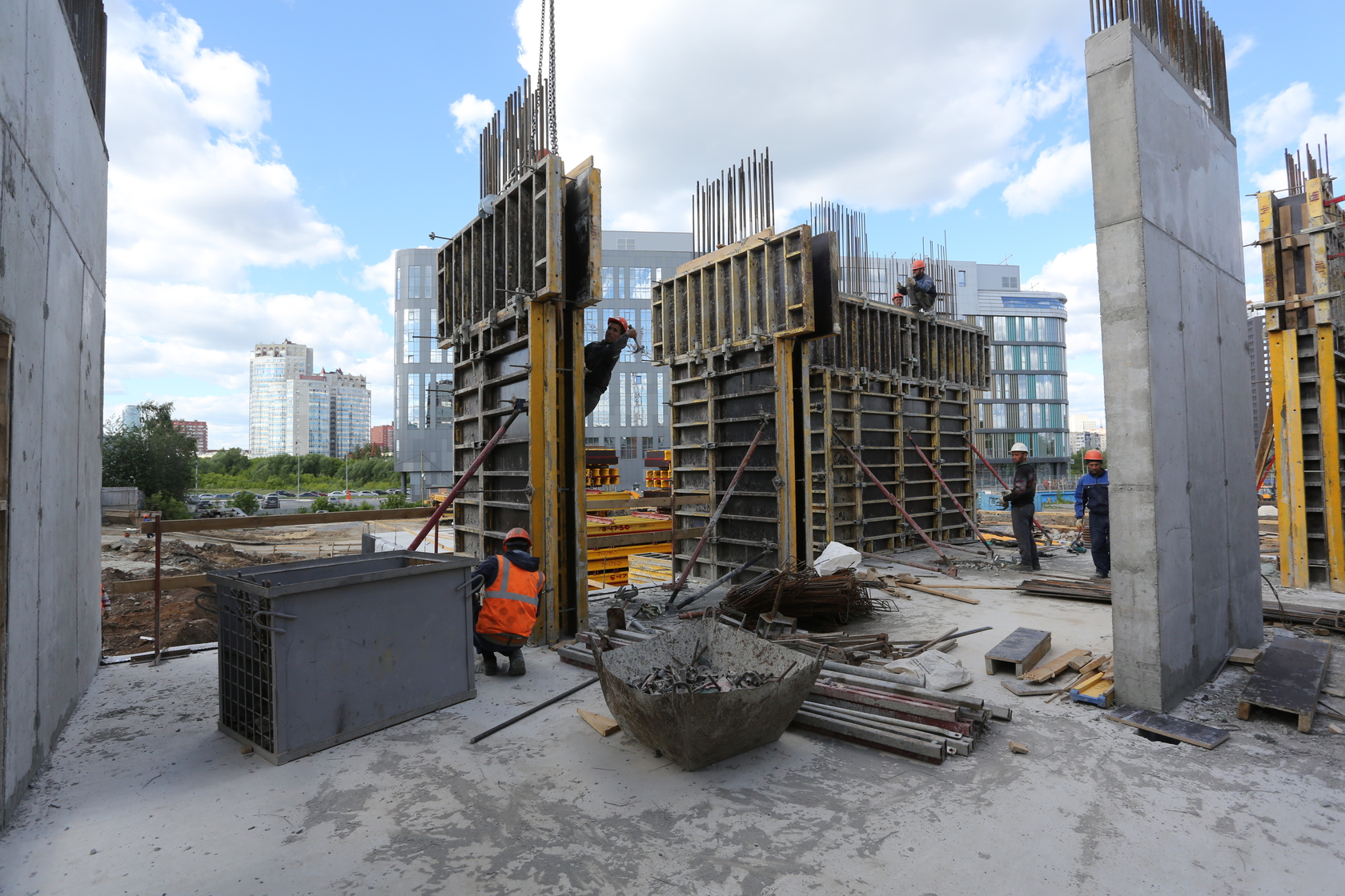 Выполняем монолитные конструкции четвёртого этажа первого жилого дома.