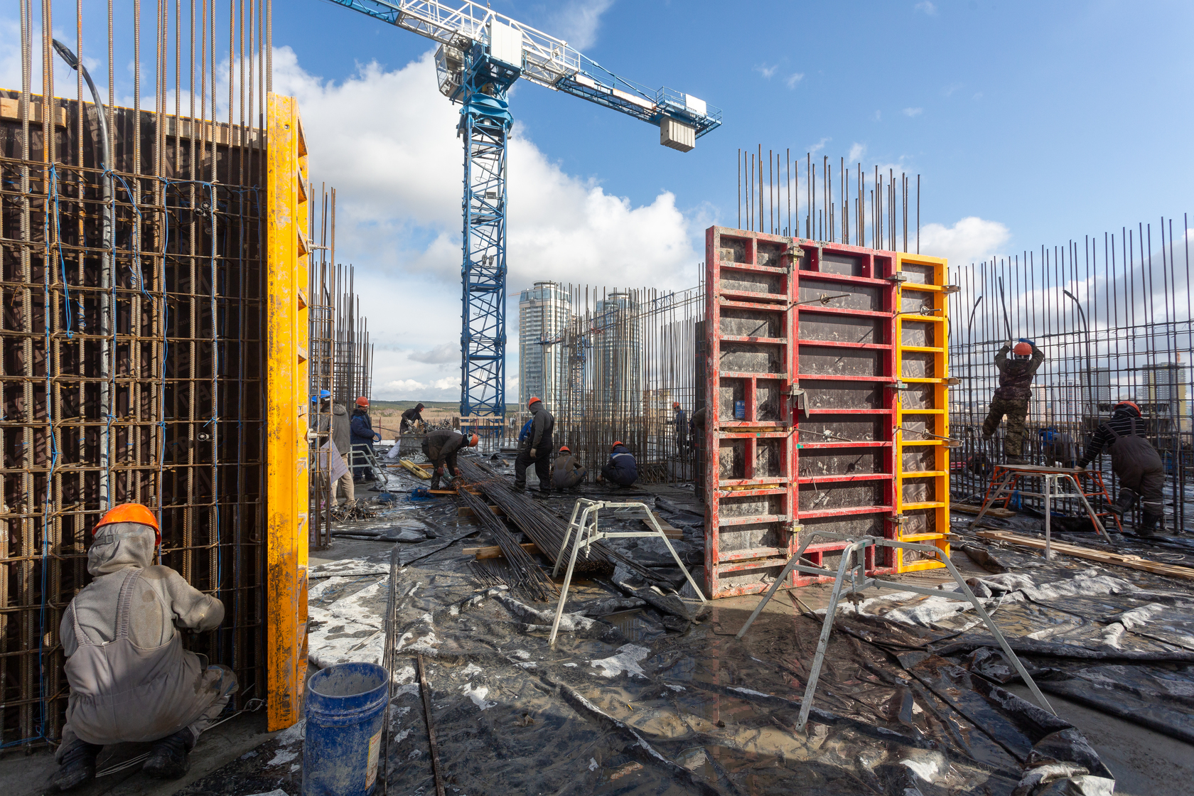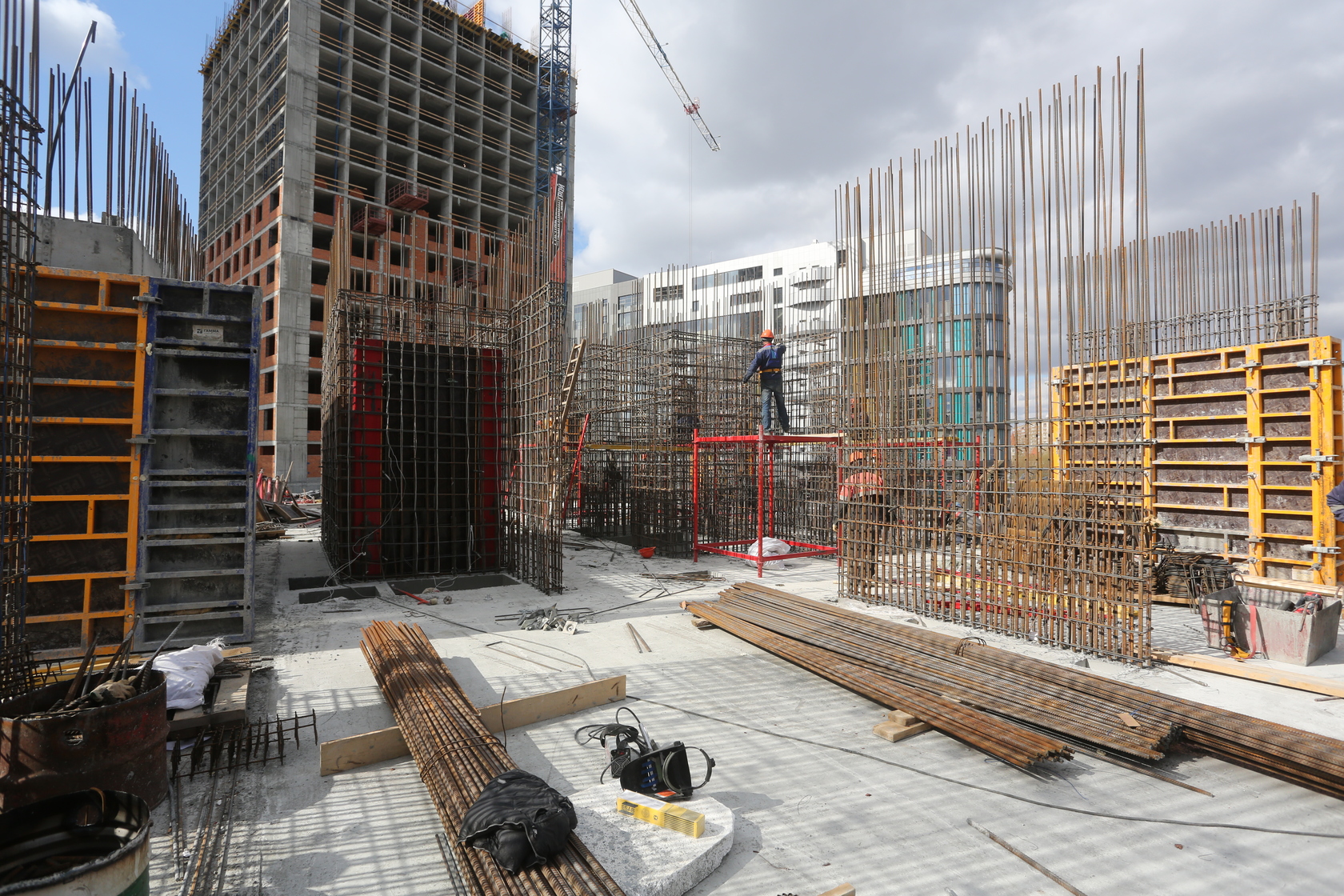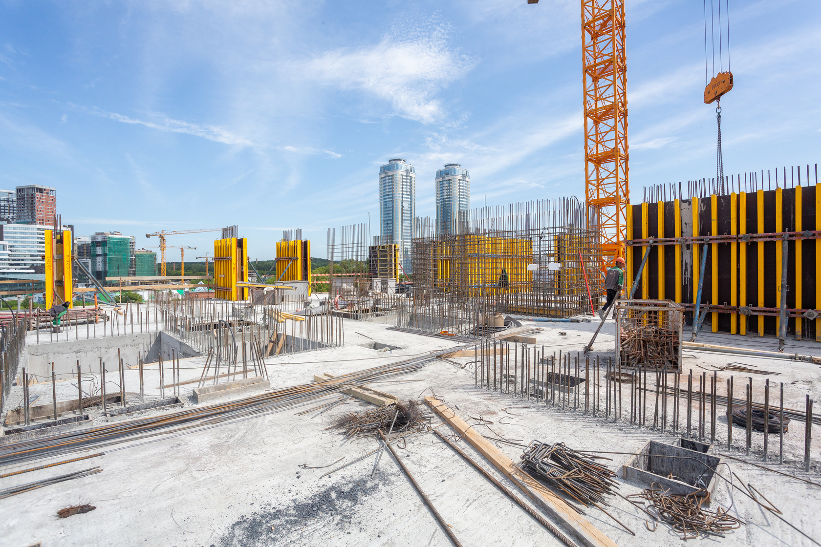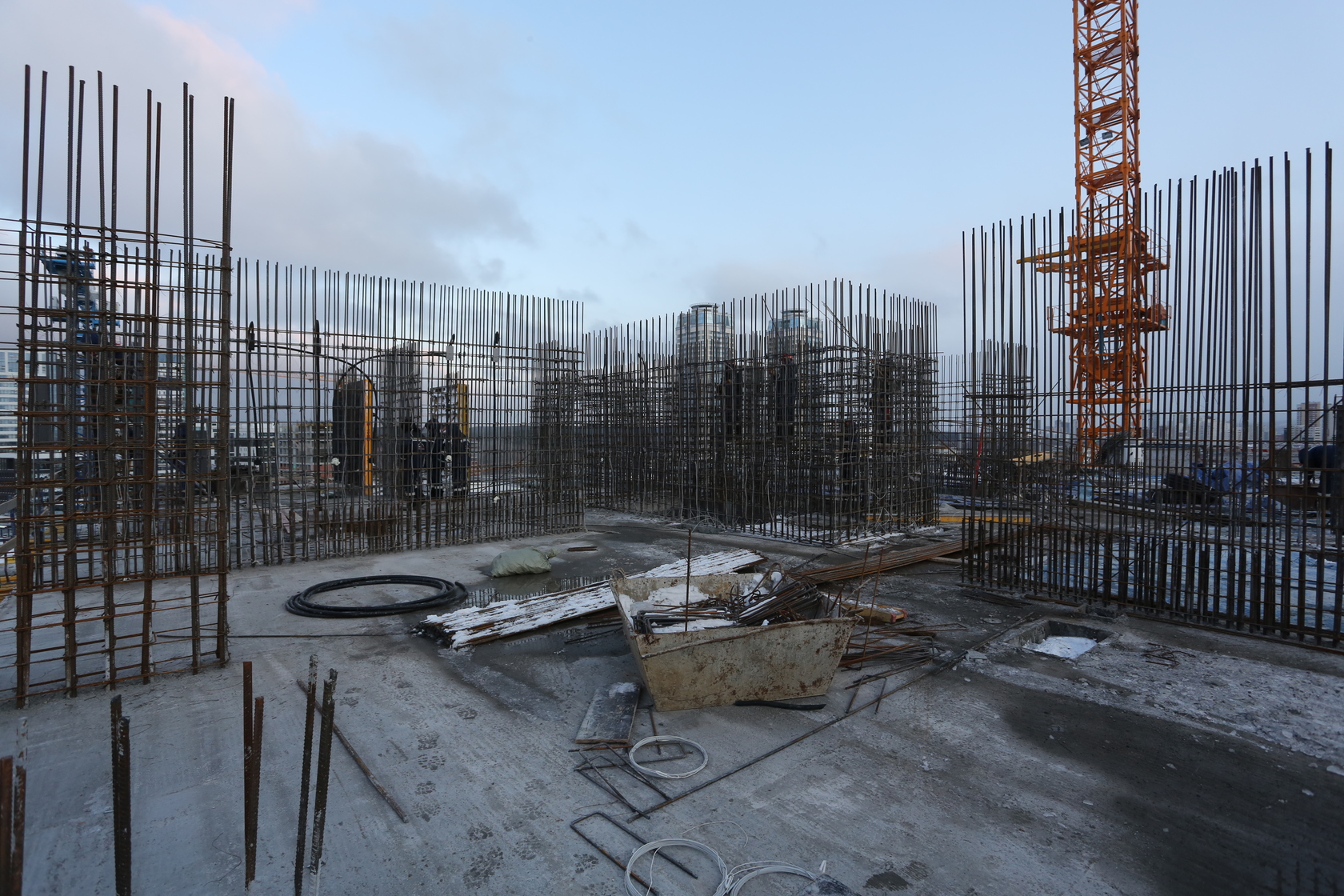 Выполняем монолитные конструкции 14 этажа первого дома.