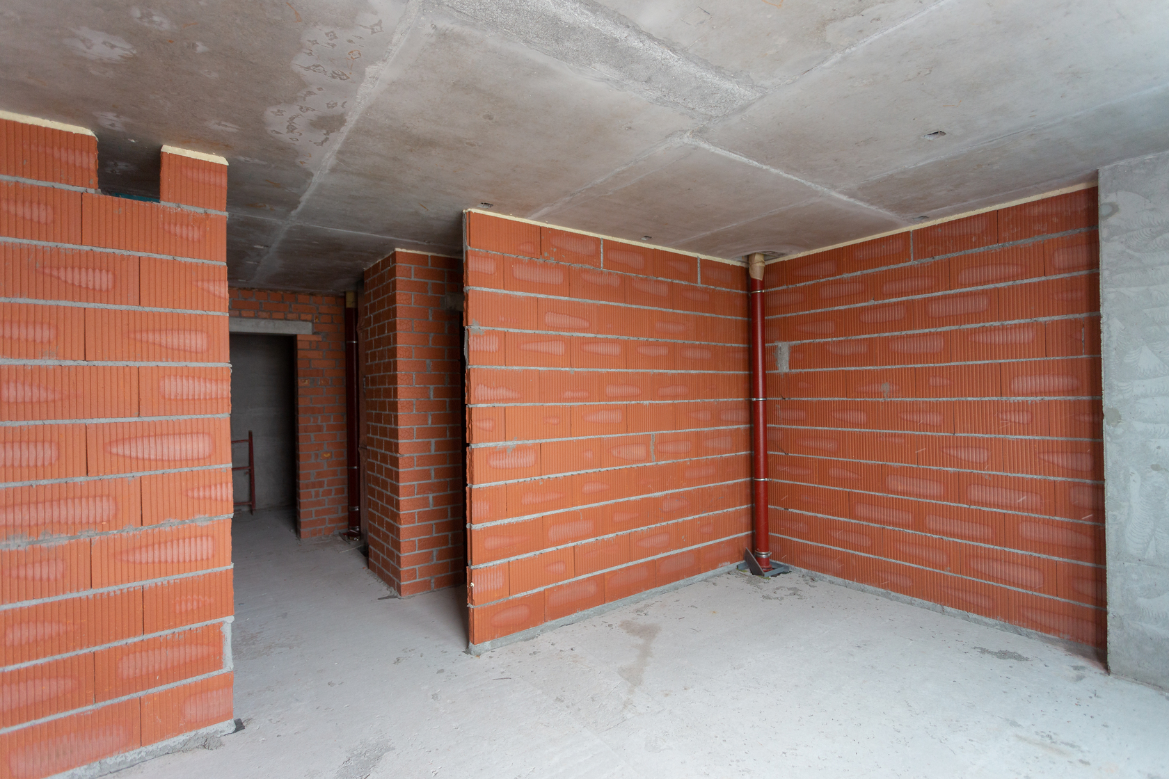 Выполняем кирпичную кладку стен на 1–4 этажах.