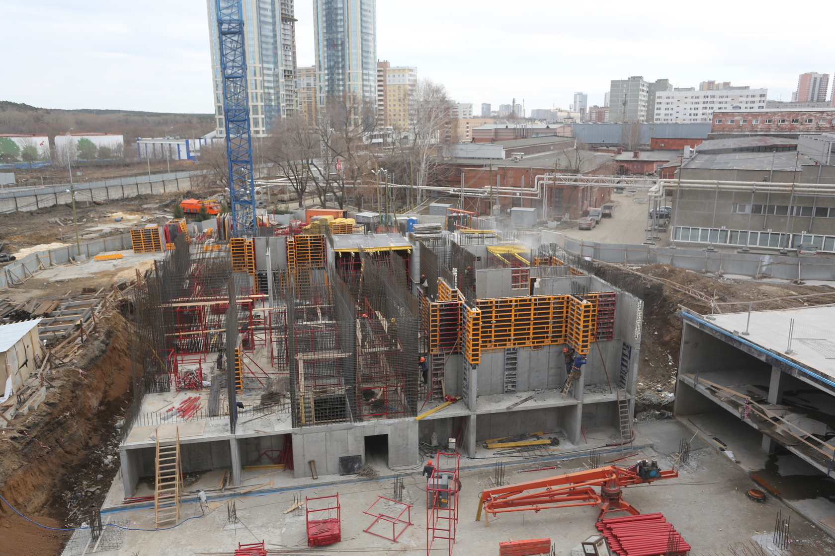 Возводим монолитные конструкции стен подземной части дома и паркинга.