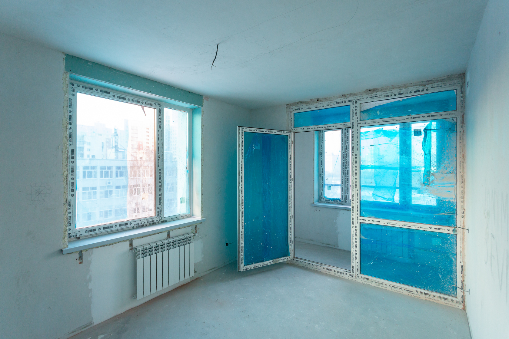 – монтируем радиаторы отопления и оконные откосы;