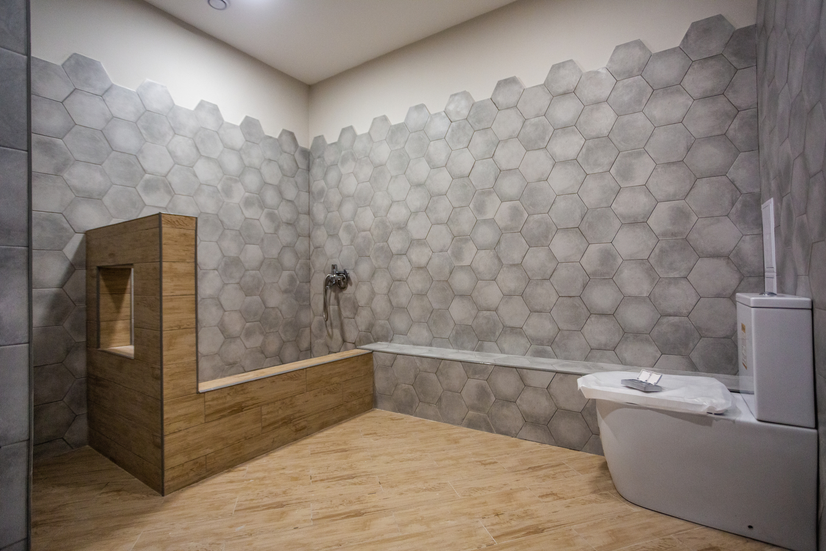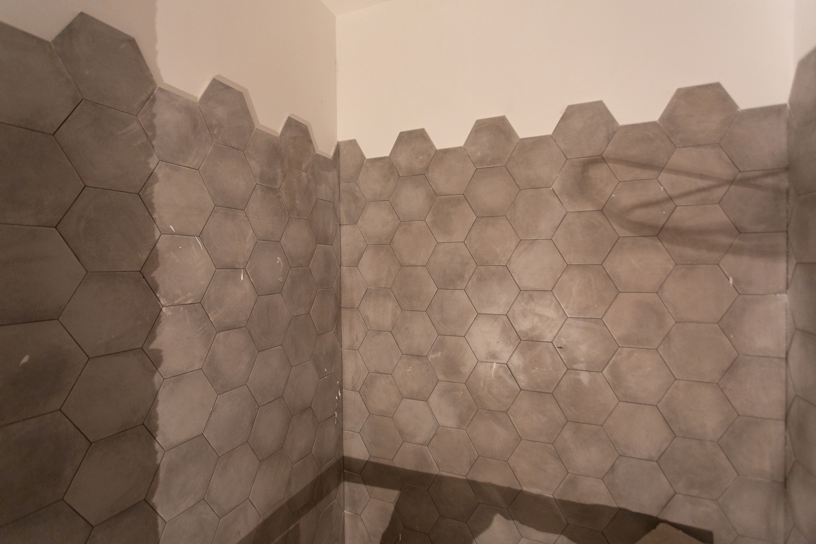 – закончили укладку плитки в МОП.
