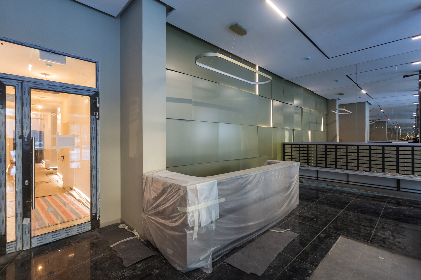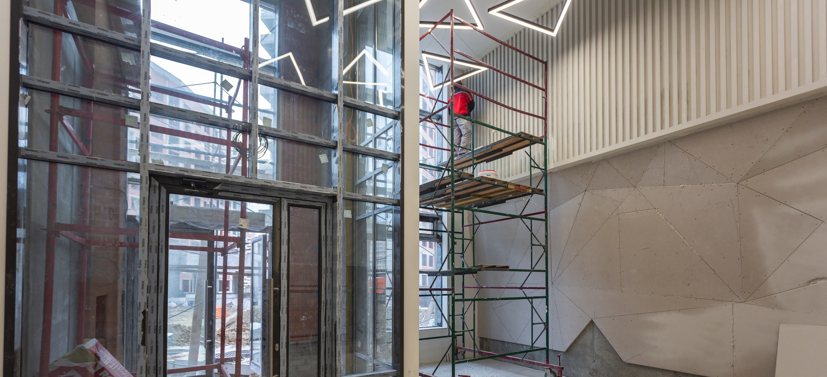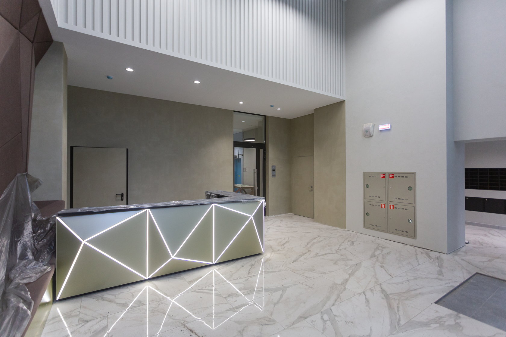 – выполняем отделку холла 1 этажа и в МОП.