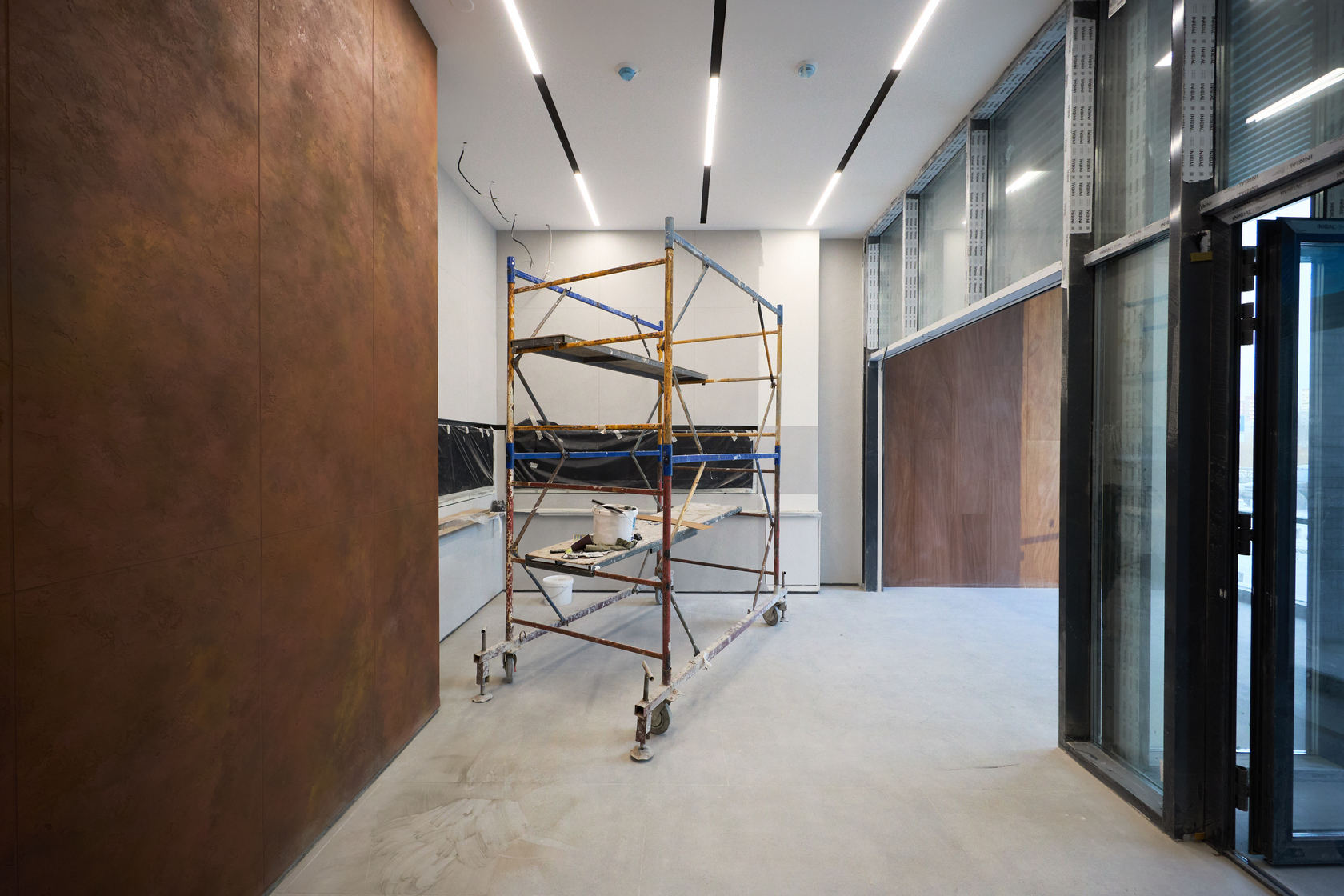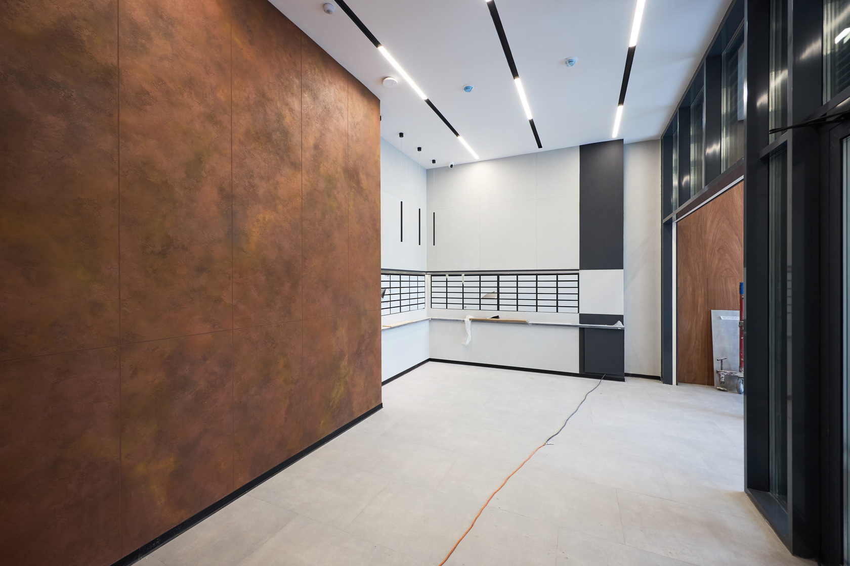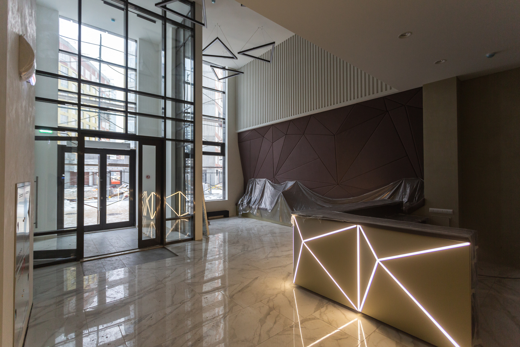 – выполняем отделку холла 1 этажа и в МОП.
