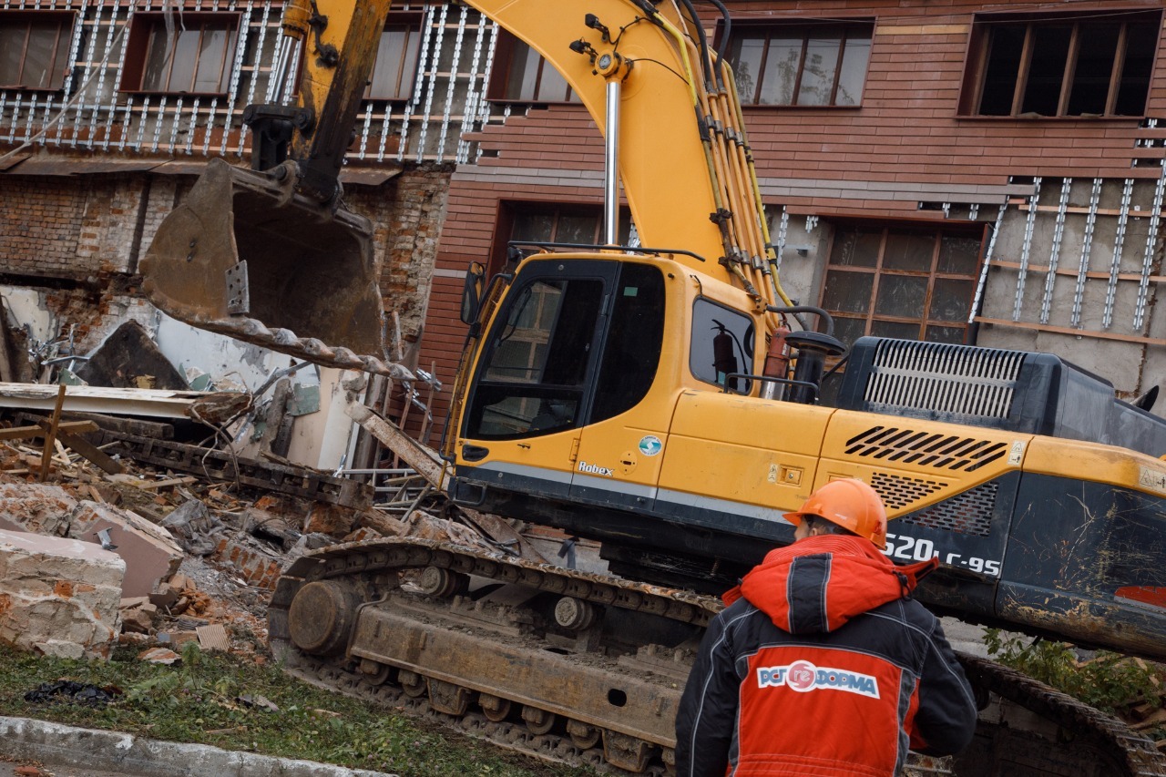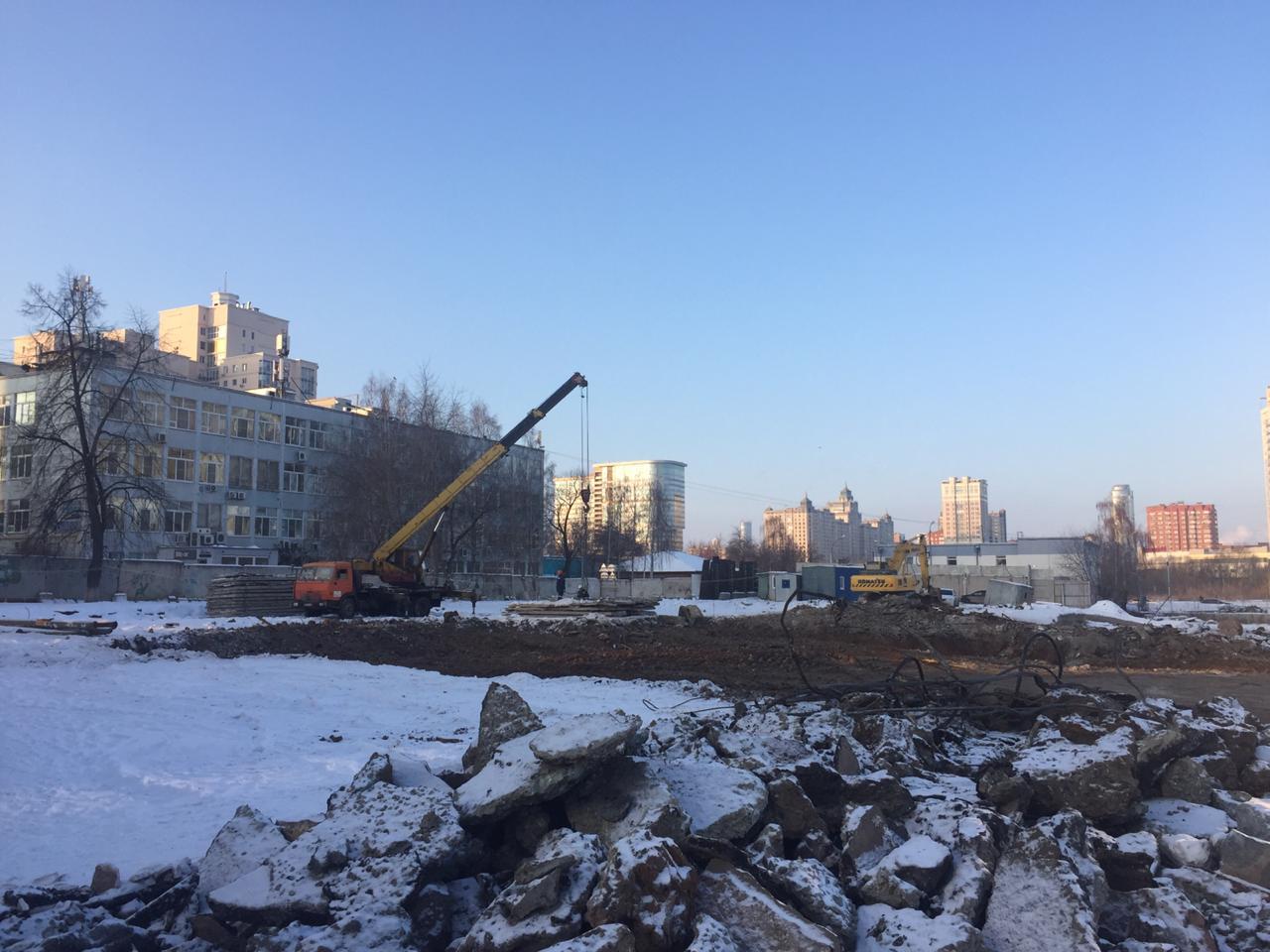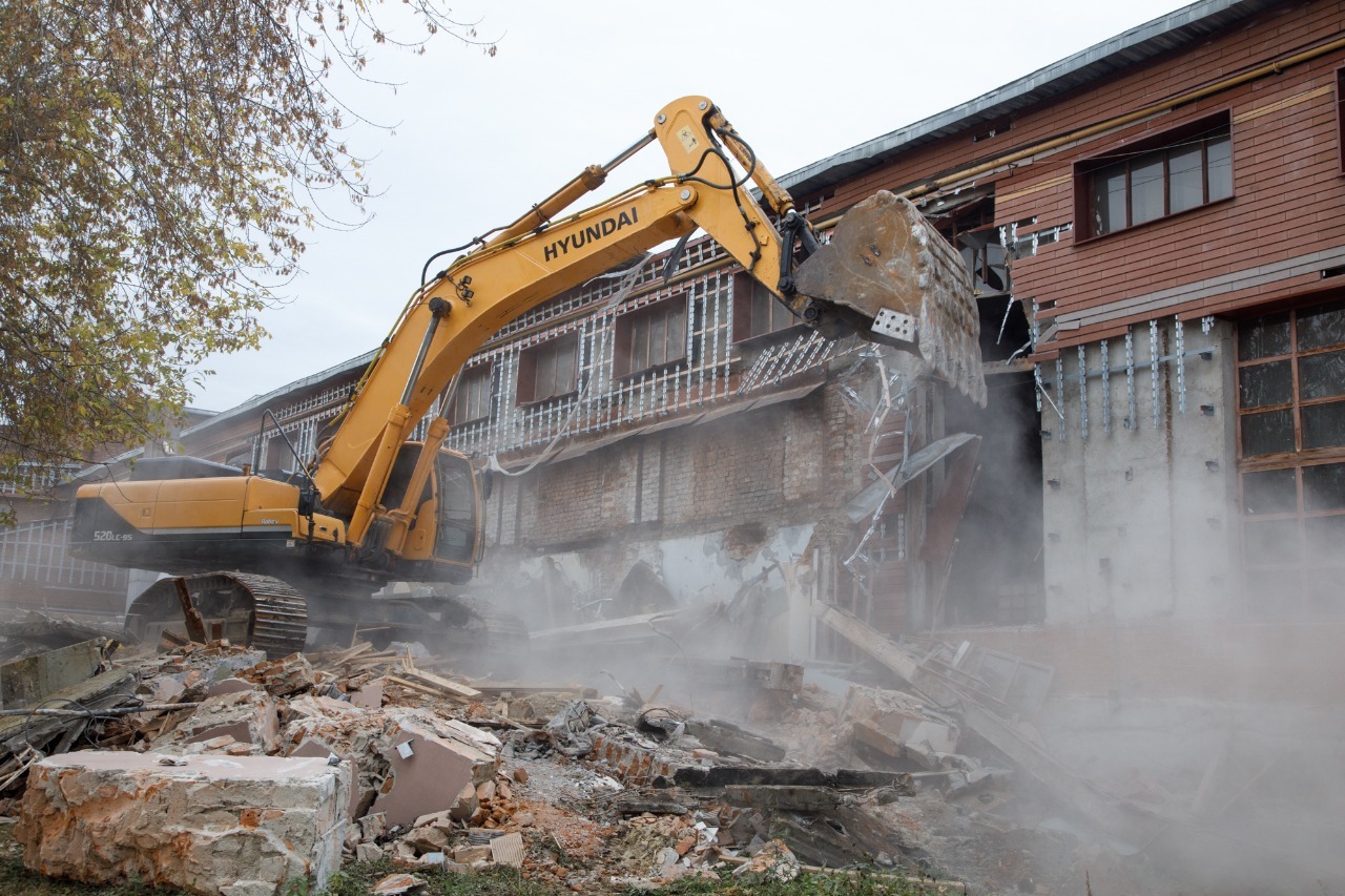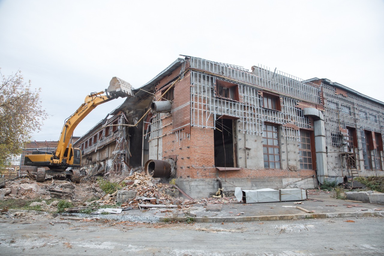 Выполняем снос производственных корпусов завода. Выносим сети из пятна застройки первого дома.