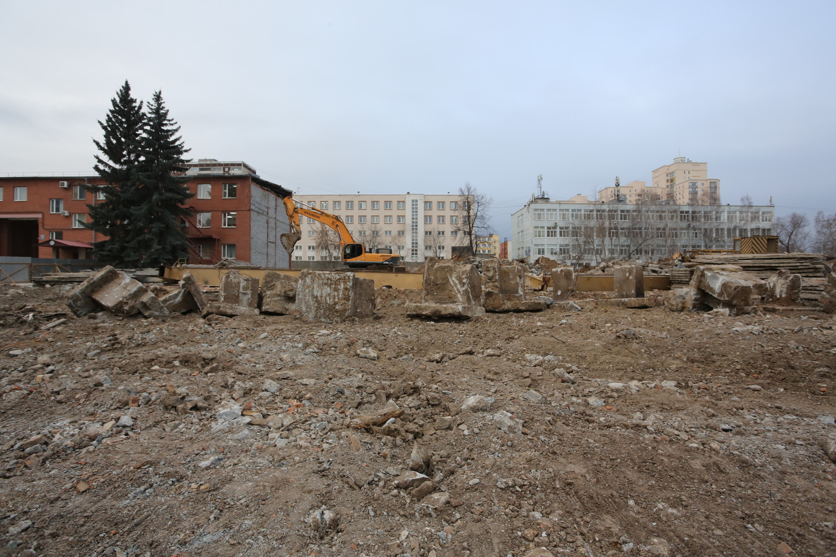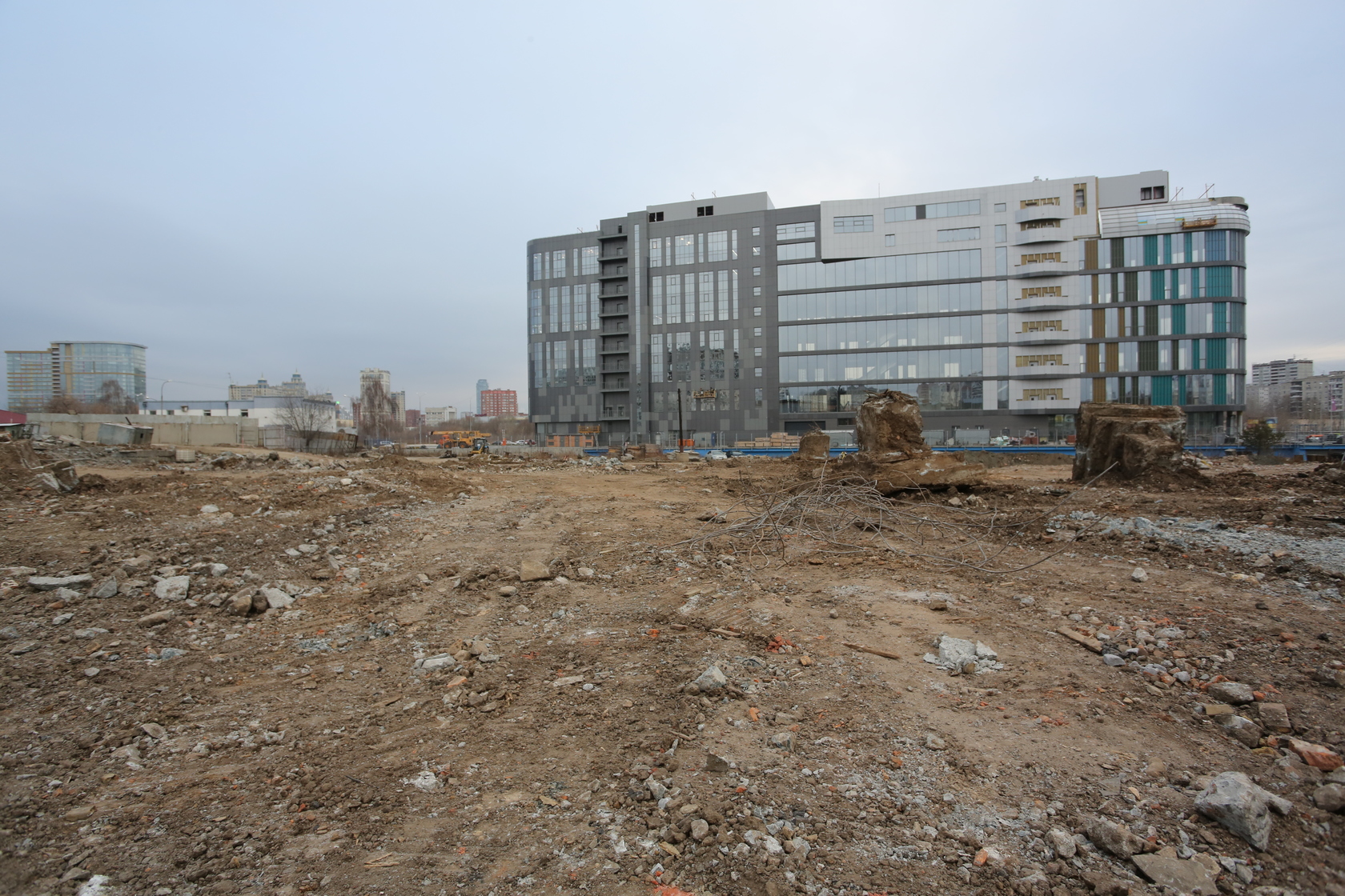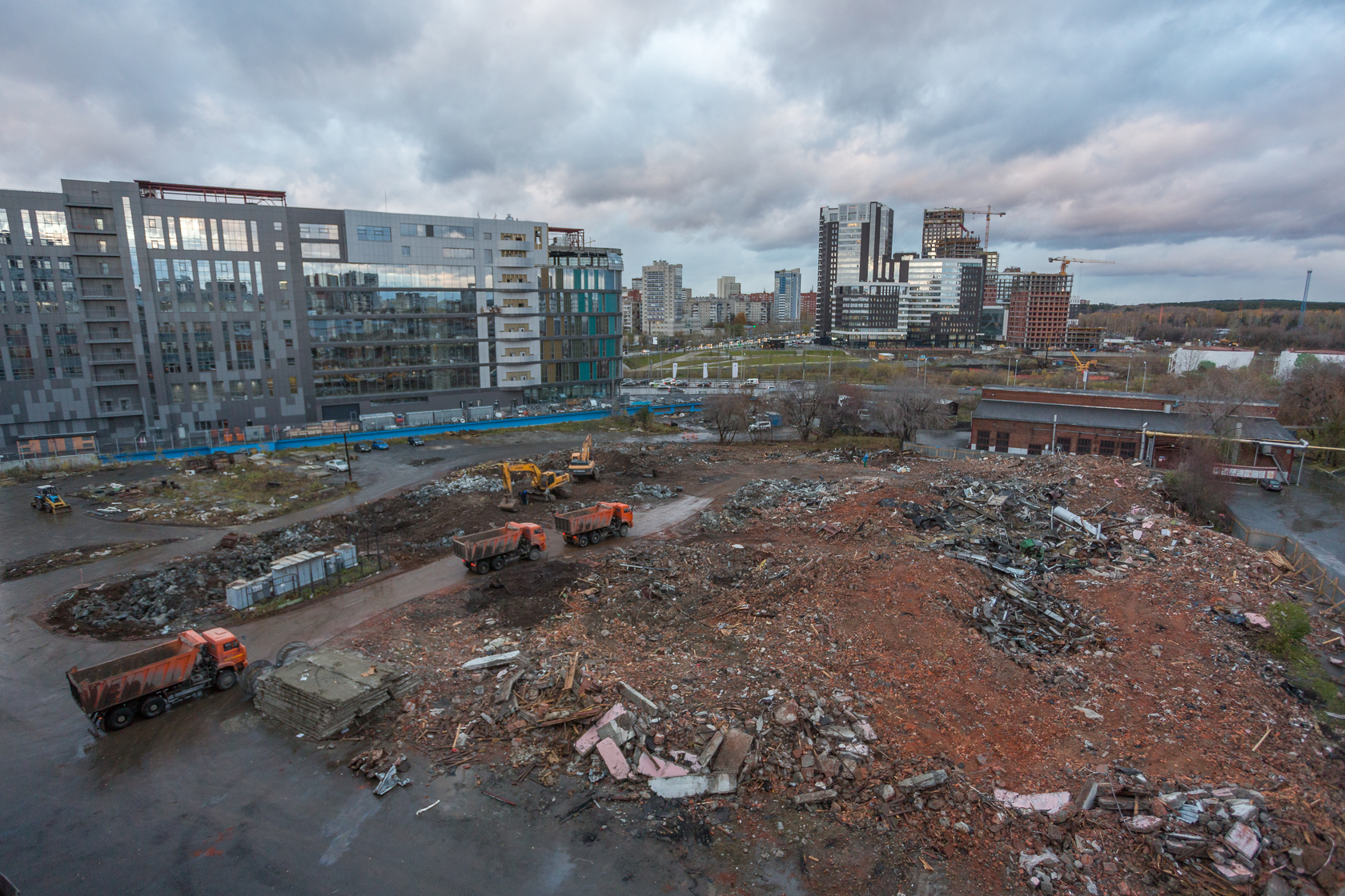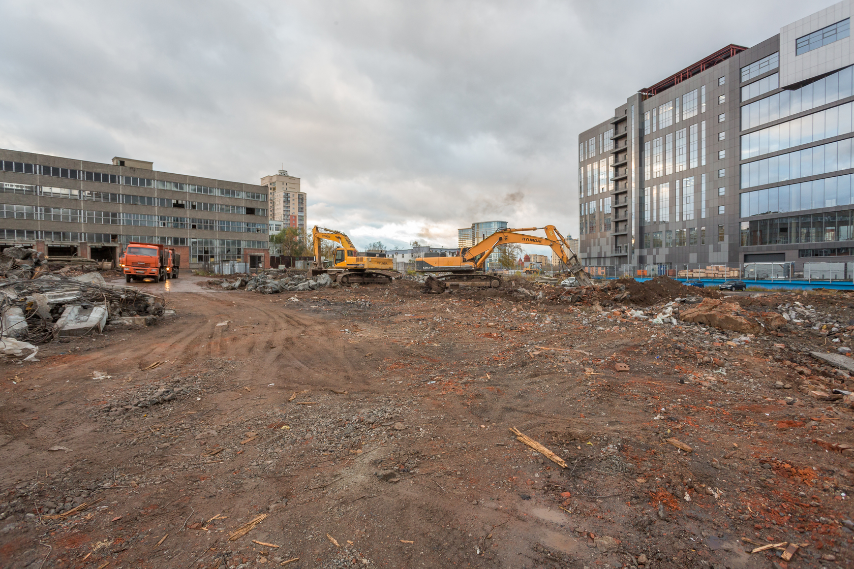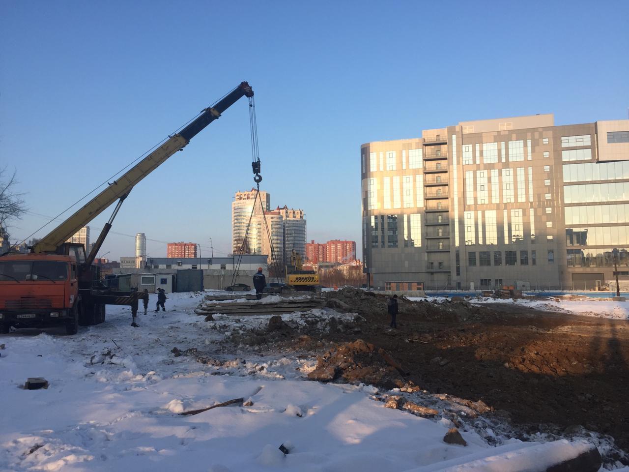 Выполняем снос производственных корпусов завода. Выносим сети из пятна застройки первого дома.