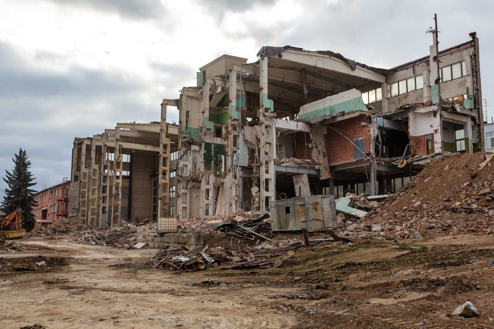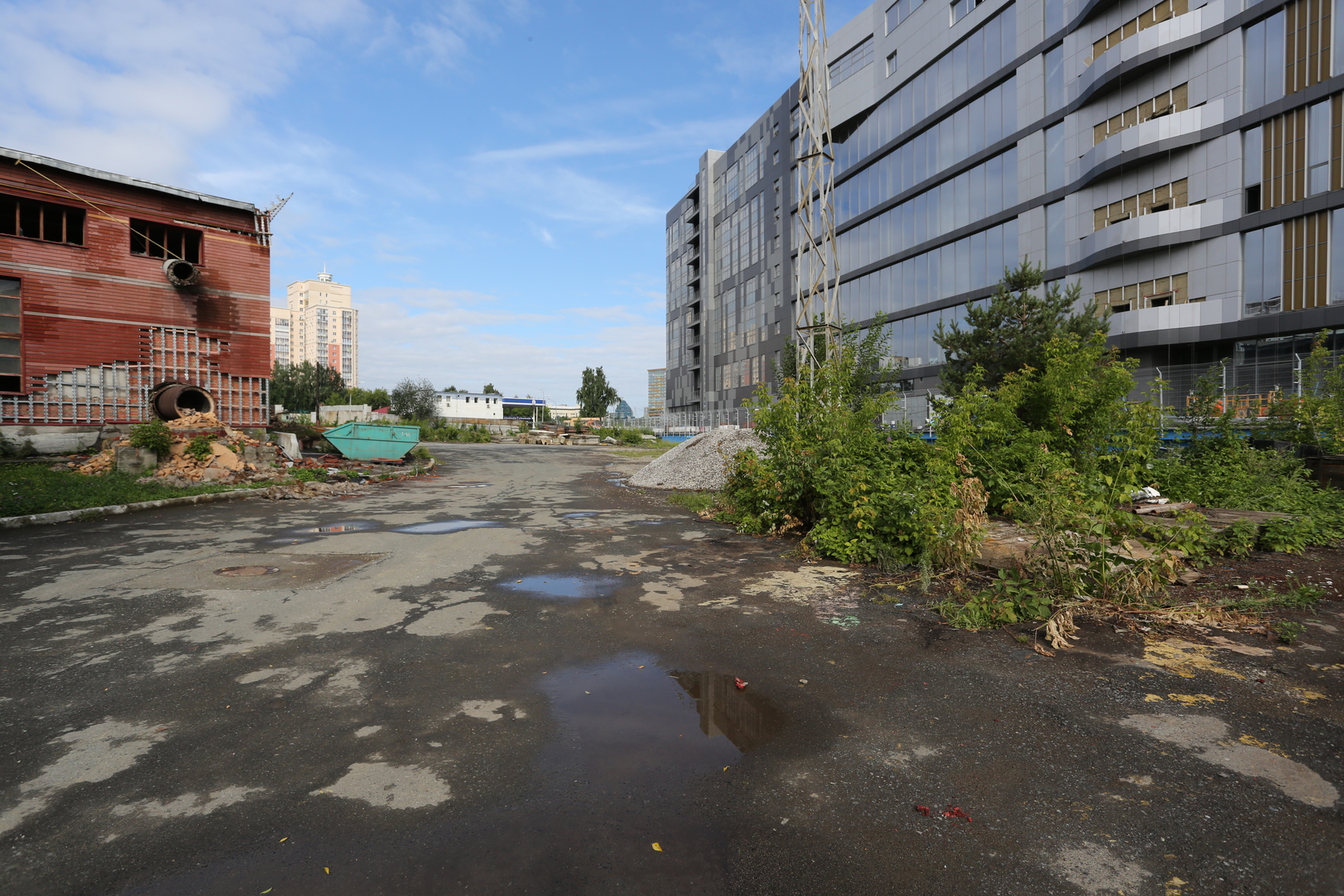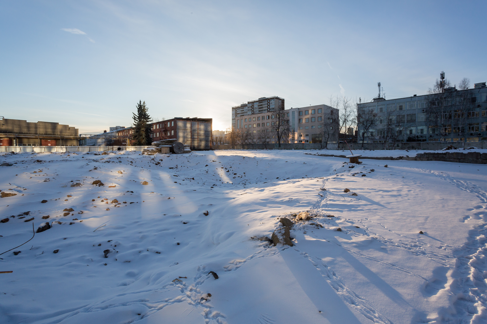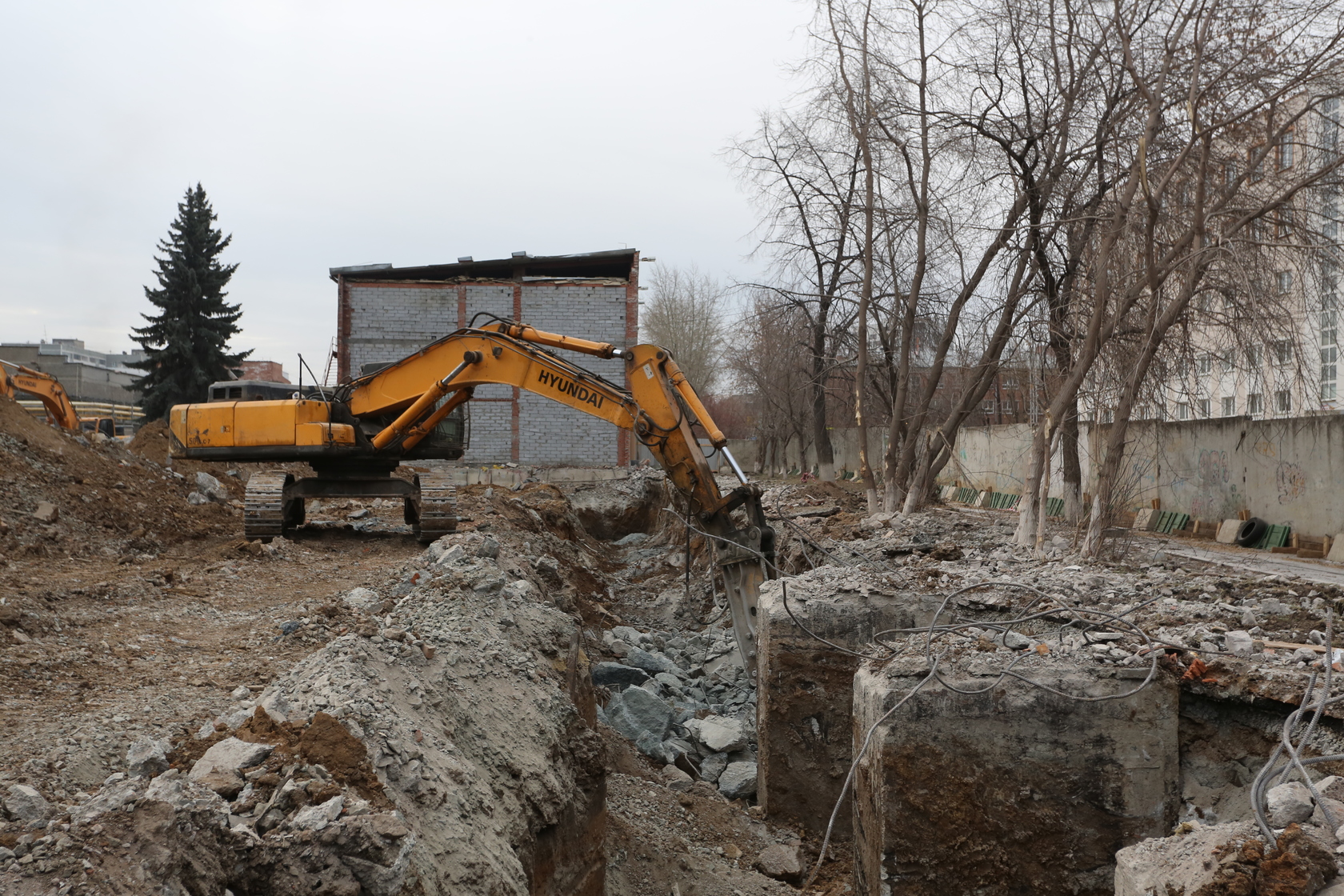 Выполняем снос производственных корпусов завода. Выносим сети из пятна застройки первого дома.
