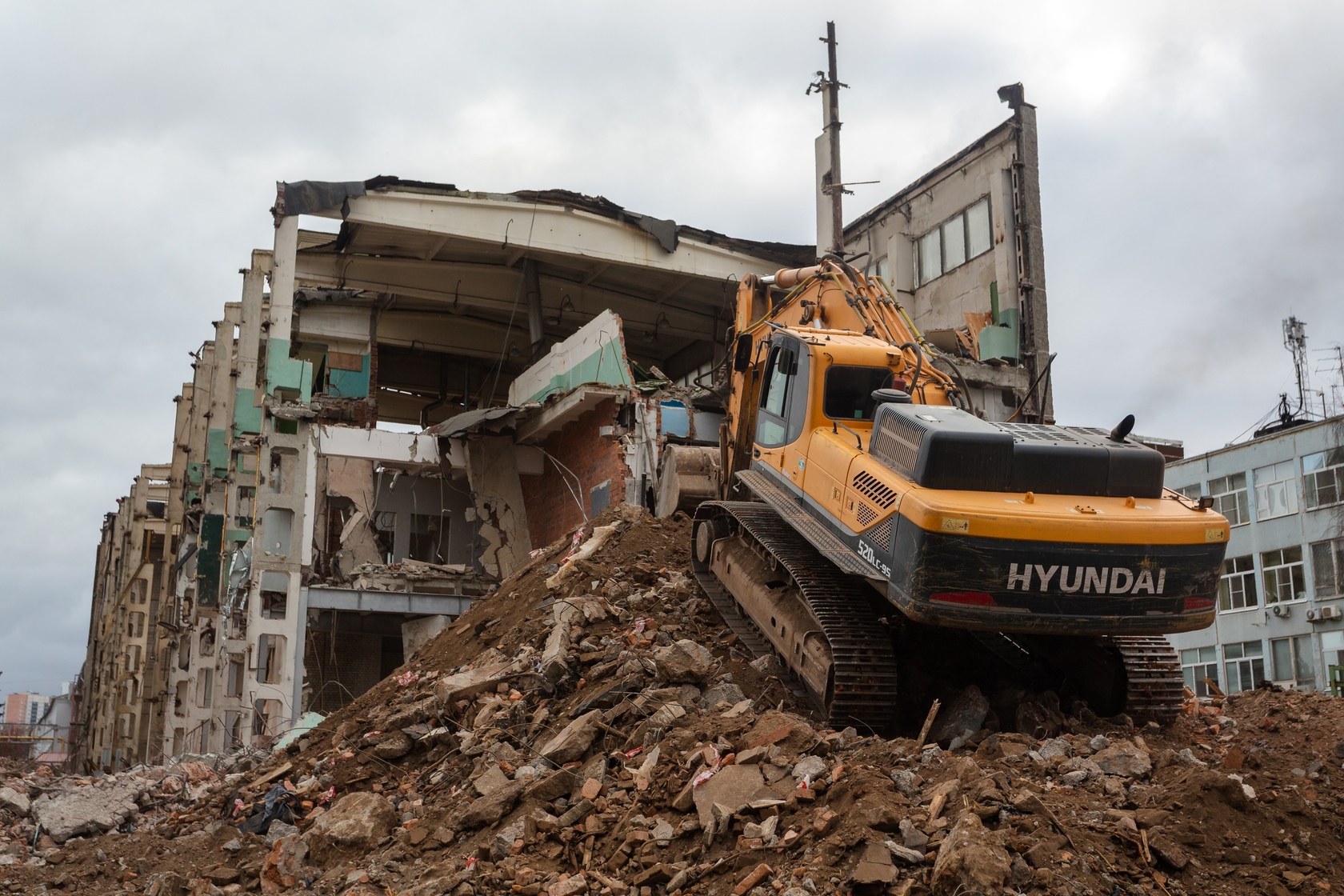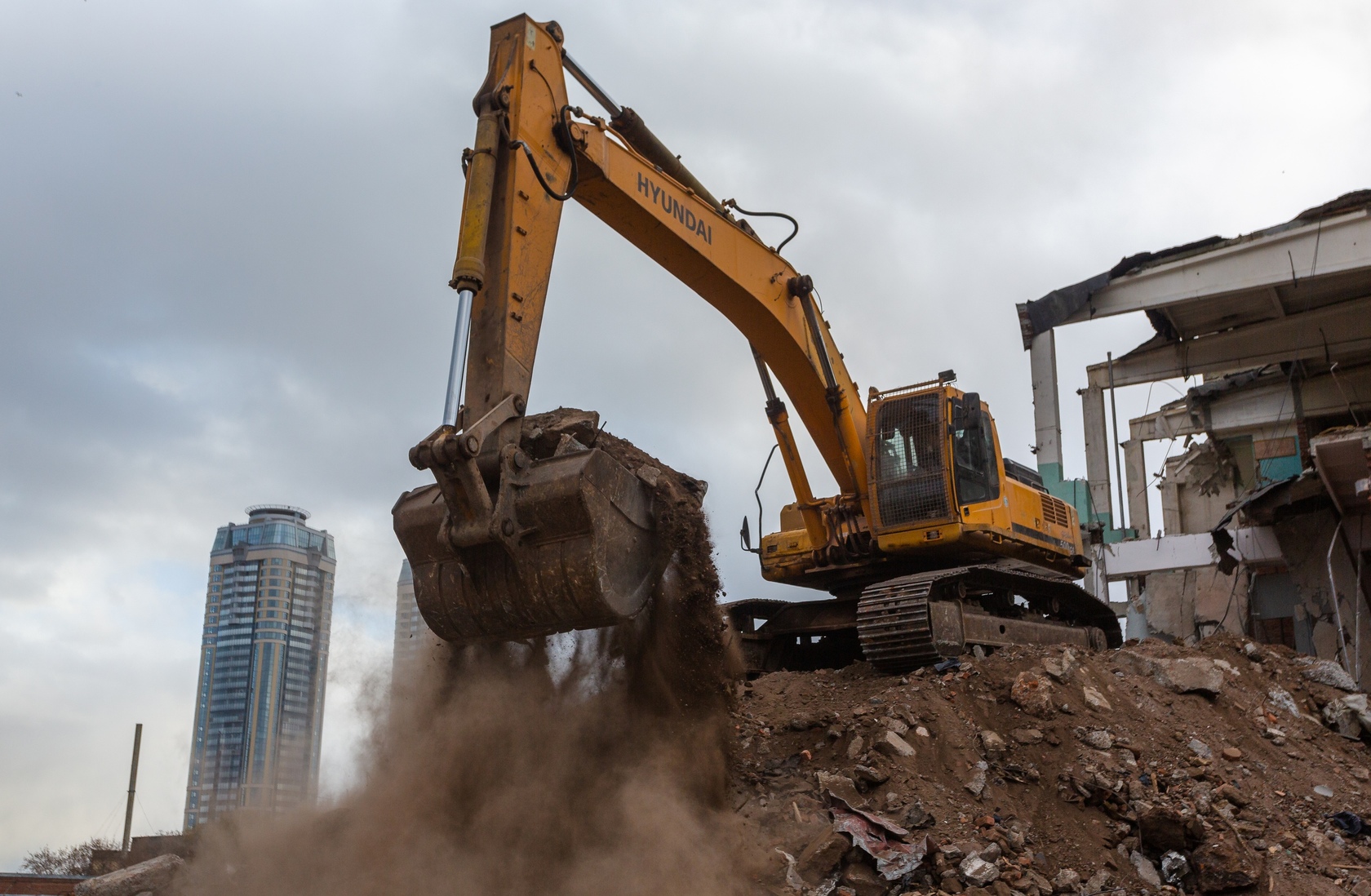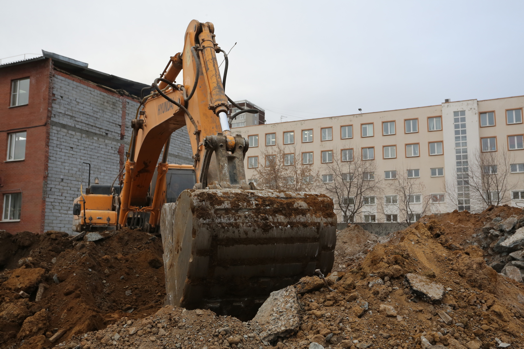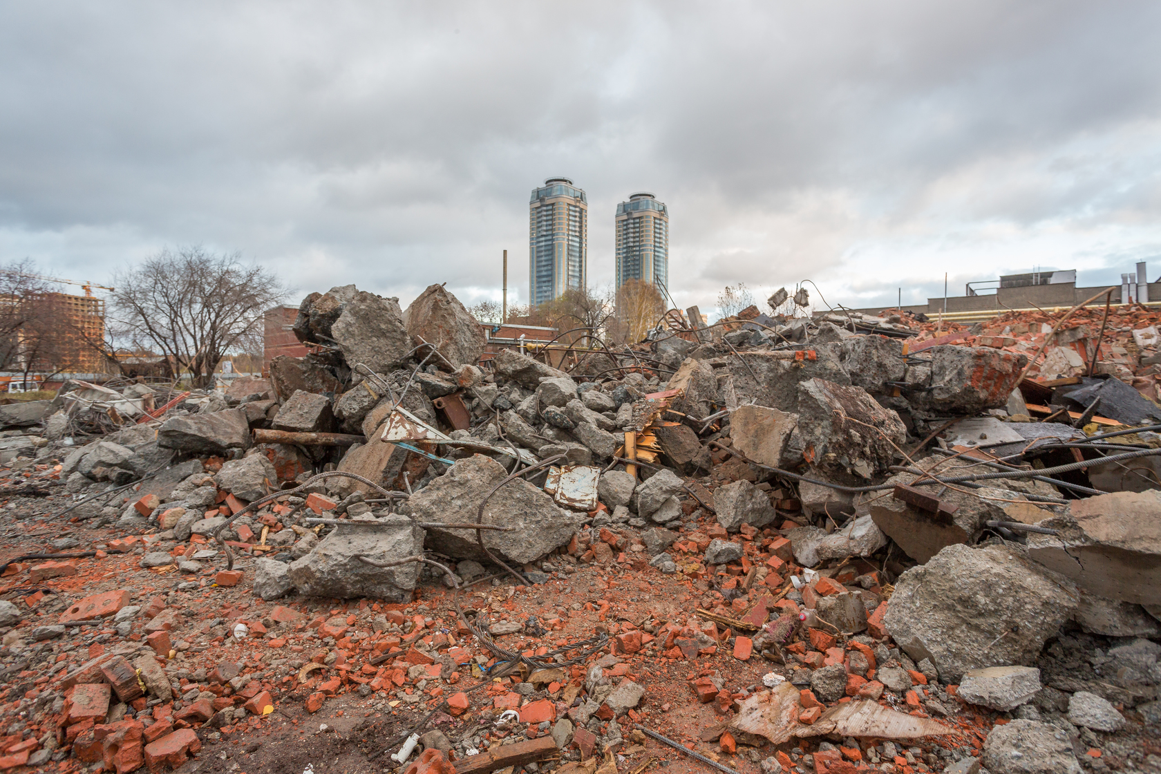 Выполняем снос производственных корпусов завода. Выносим сети из пятна застройки первого дома.