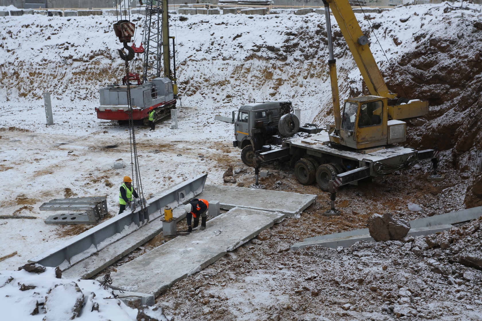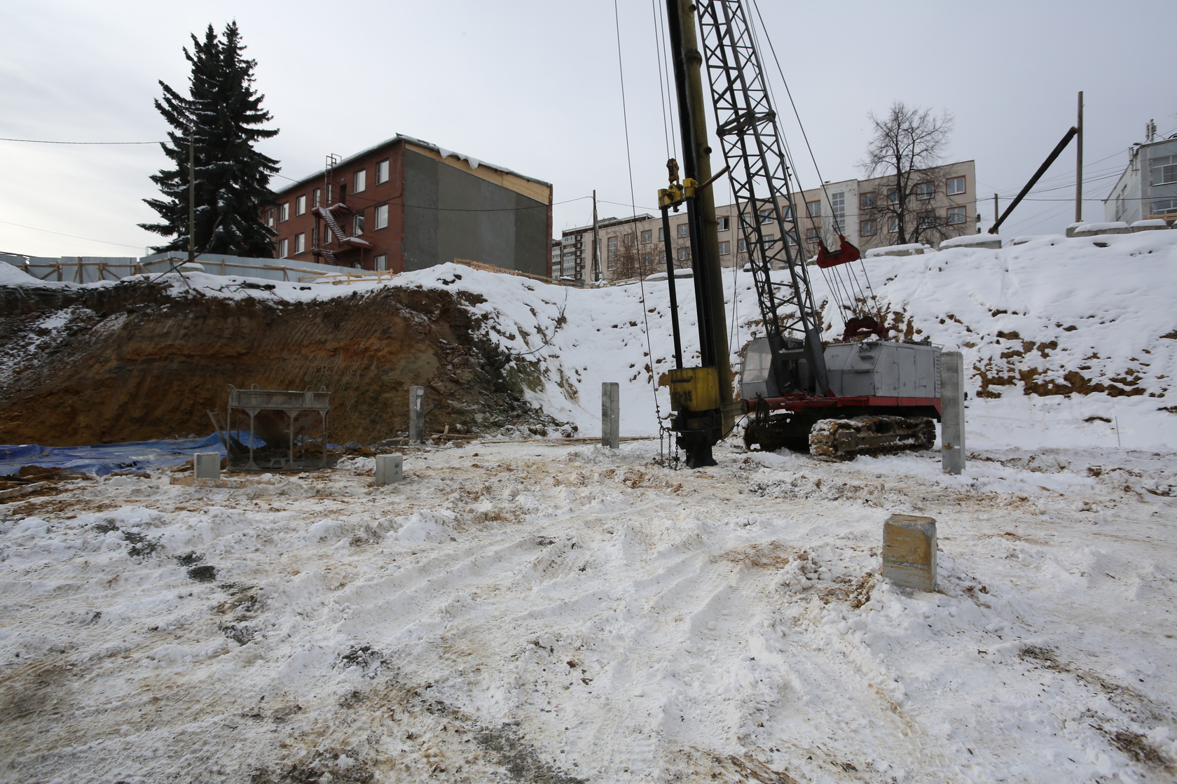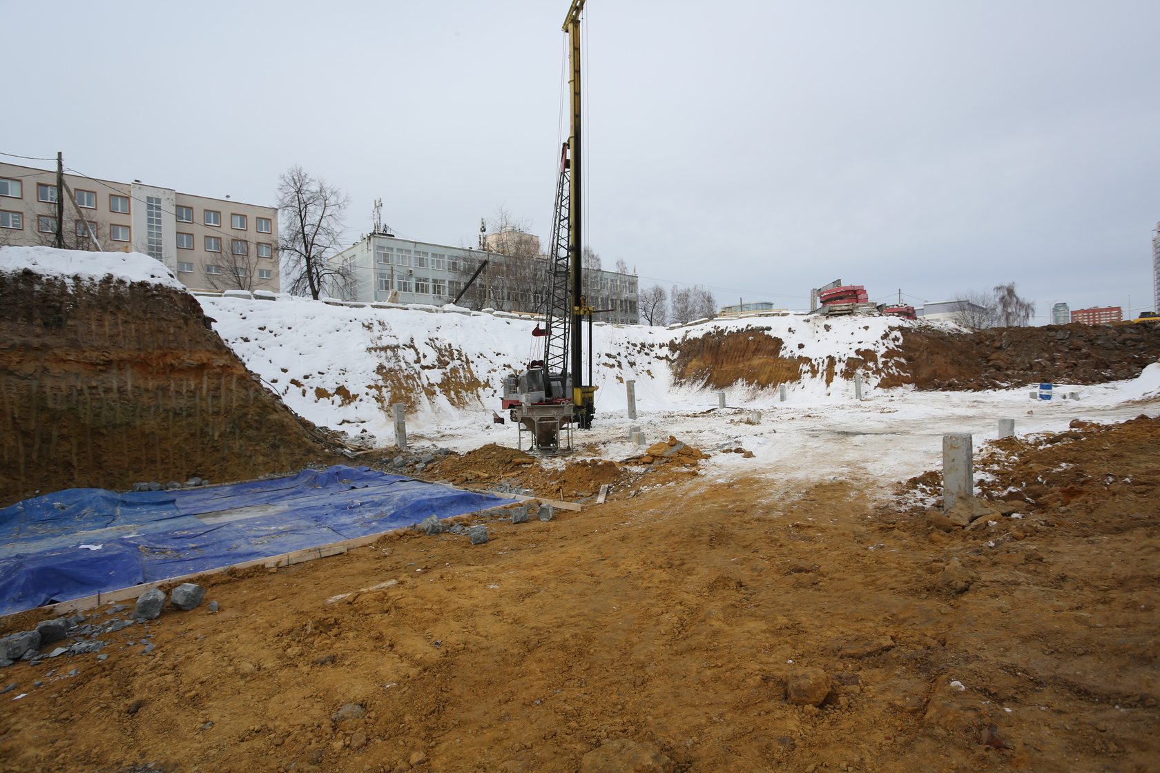 Продолжаем работы по устройству котлована. Забиваем сваи. Выполнили часть подбетонной подготовки для установки фундаментной плиты. Устанавливаем башенный кран.