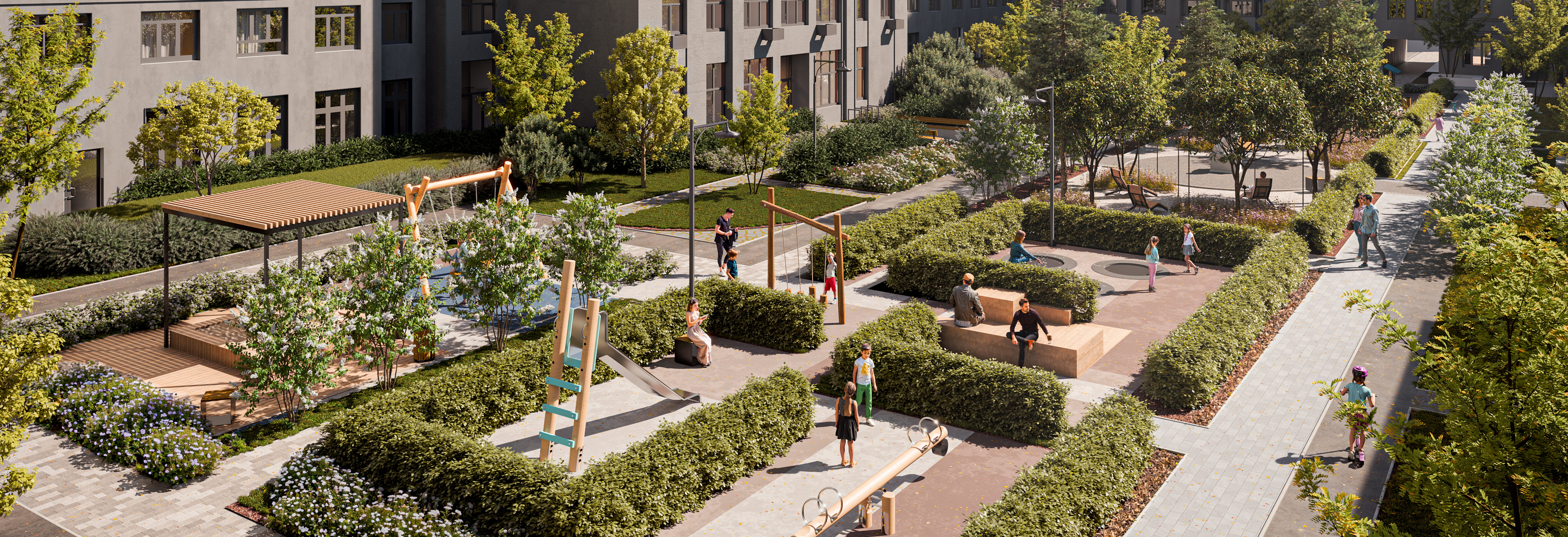 Жилой квартал комфорт-класса с благоустроенной набережной и современным парком